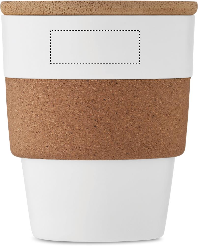 Einwandiger Trinkbecher aus recyceltem PP. Griff aus Kork und Deckel aus Bambus. Füllmenge: 300 ml. Da es sich um einen einwandigen Becher handelt, kann es trotzdem zu einer Wärmeübertragung kommen. Bambus ist ein natürliches Produkt, es kann daher zu leichten Abweichungen in Farbe, Dekor und Maßen kommen.