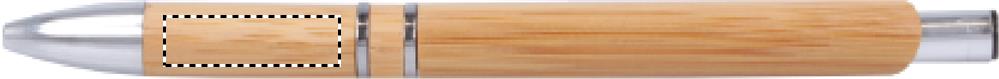 Druckkugelschreiber mit Schaft aus Bambus. Drücker, Clip und Spitze aus Aluminium. Blaue Tinte. Bambus ist ein natürliches Produkt, es kann daher zu leichten Abweichungen in Farbe, Dekor und Maßen kommen.