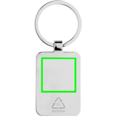 Eckiger Schlüsselanhänger aus RCS recycelter Zinklegierung und Bambus. Gesamter recycelter Inhalt: 76 %, bezogen auf das Gesamtgewicht des Artikels. Die RCS-Zertifizierung gewährleistet eine vollständig zertifizierte Lieferkette der recycelten Materialien. Verpackt in einer Papiertüte.
