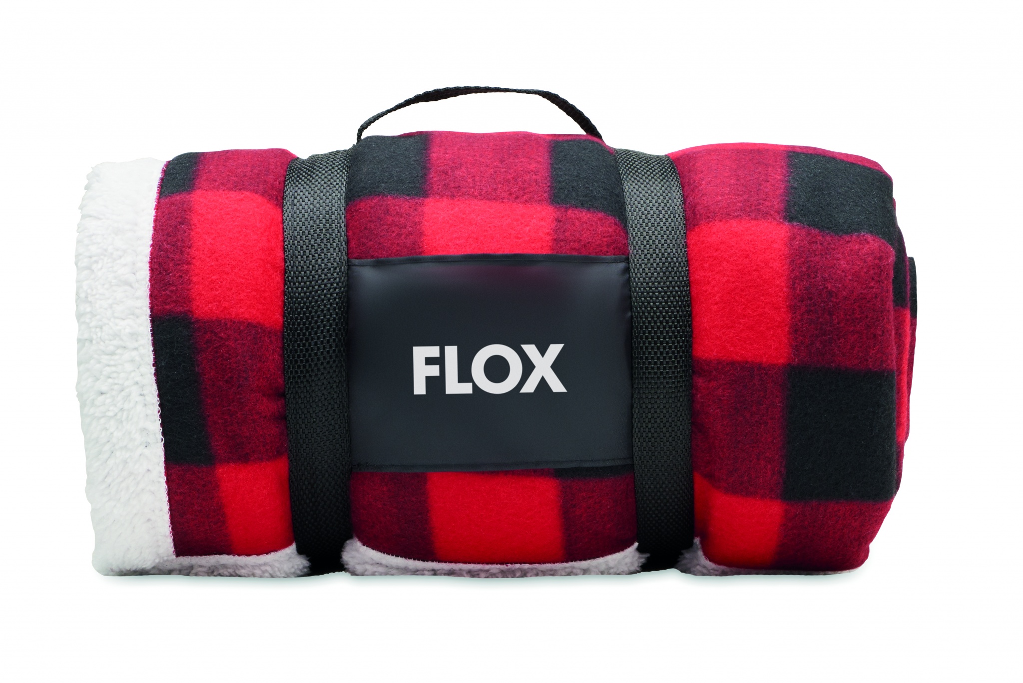 Fleece-Decke aus RPET-Polarfleece (180 g/m²). Rückseite aus Polyester-Sherpa (230 g/m²). Inkl. RPET-Nylon-Tragegriff.