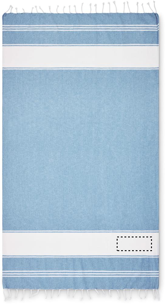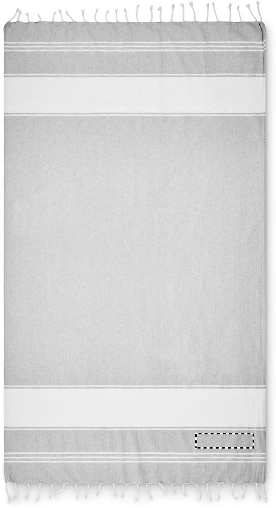 Strandtuch/Hamamtuch mit passender Tasche. 70% Baumwolle und 30% Polyester, 180 g/m².