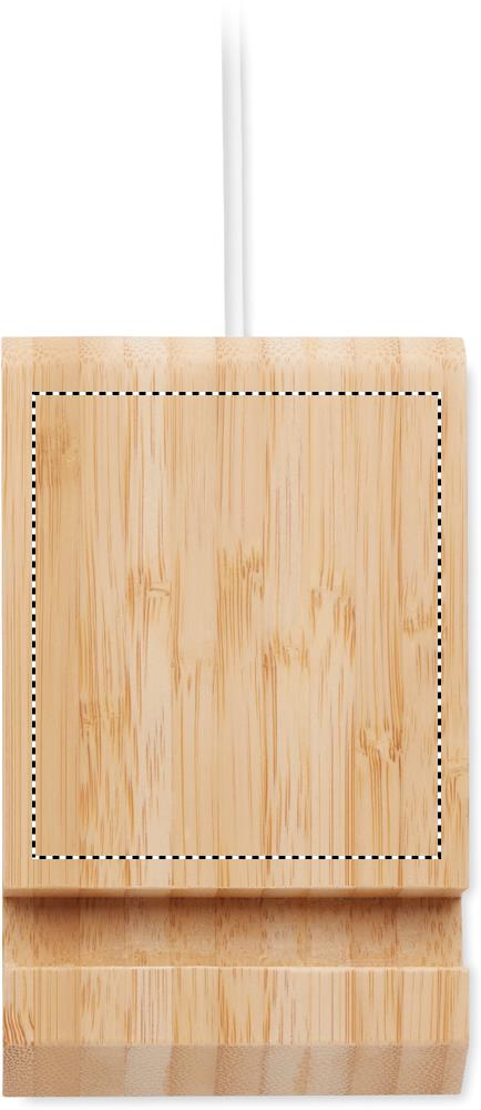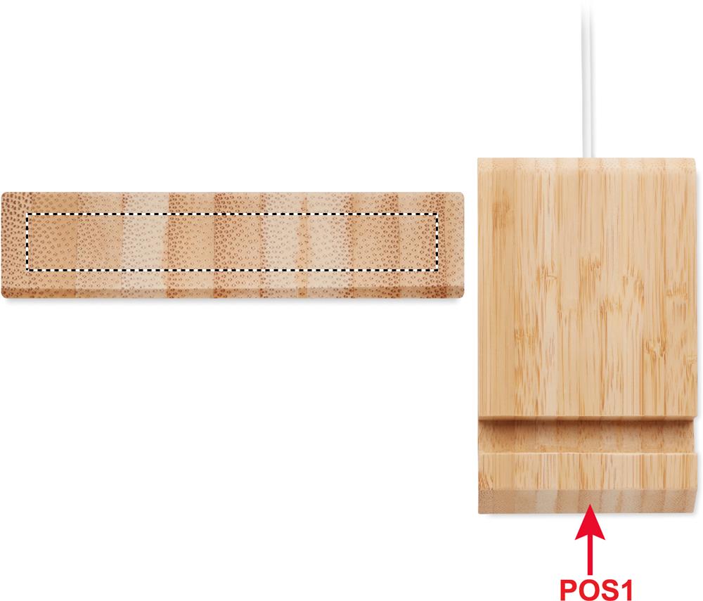 Kabellose 10W Ladestation aus Bambus mit Smartphone-Halter. Ausgang: DC 9V/1.1A geeignet für Schnellladung. Kompatibel mit den neuesten Androiden, iPhone® 8 und neueren Modellen. Bambus ist ein natürliches Produkt, es kann daher zu leichten Abweichungen in Farbe, Dekor und Maßen kommen.