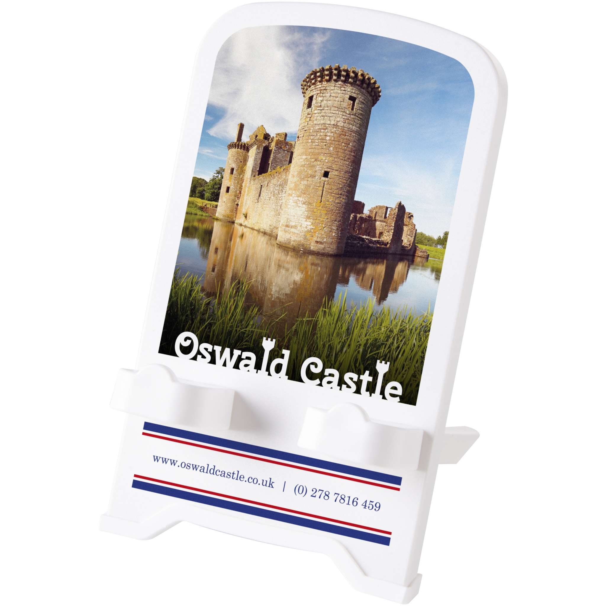 Dieser Smartphone Halter ist ein unverzichtbares Schreibtischzubehör und ideal für alle, die von zu Hause aus arbeiten. Mit diesem praktischen Produkt ist das Telefon immer in der Nähe und bereit für Videoanrufe, das Anschauen von Videos oder einfach nur, um sich über soziale Medien zu unterhalten. Die weiße Rückwand besteht aus recyceltem Kunststoff und die Station ist so konzipiert, dass das Gerät aufgeladen werden kann, während es sich in der Station befindet. Wird flach verpackt in einem Geschenkkarton geliefert und ist durch sein niedriges Profil ideal für den Postversand. Hergestellt in UK.