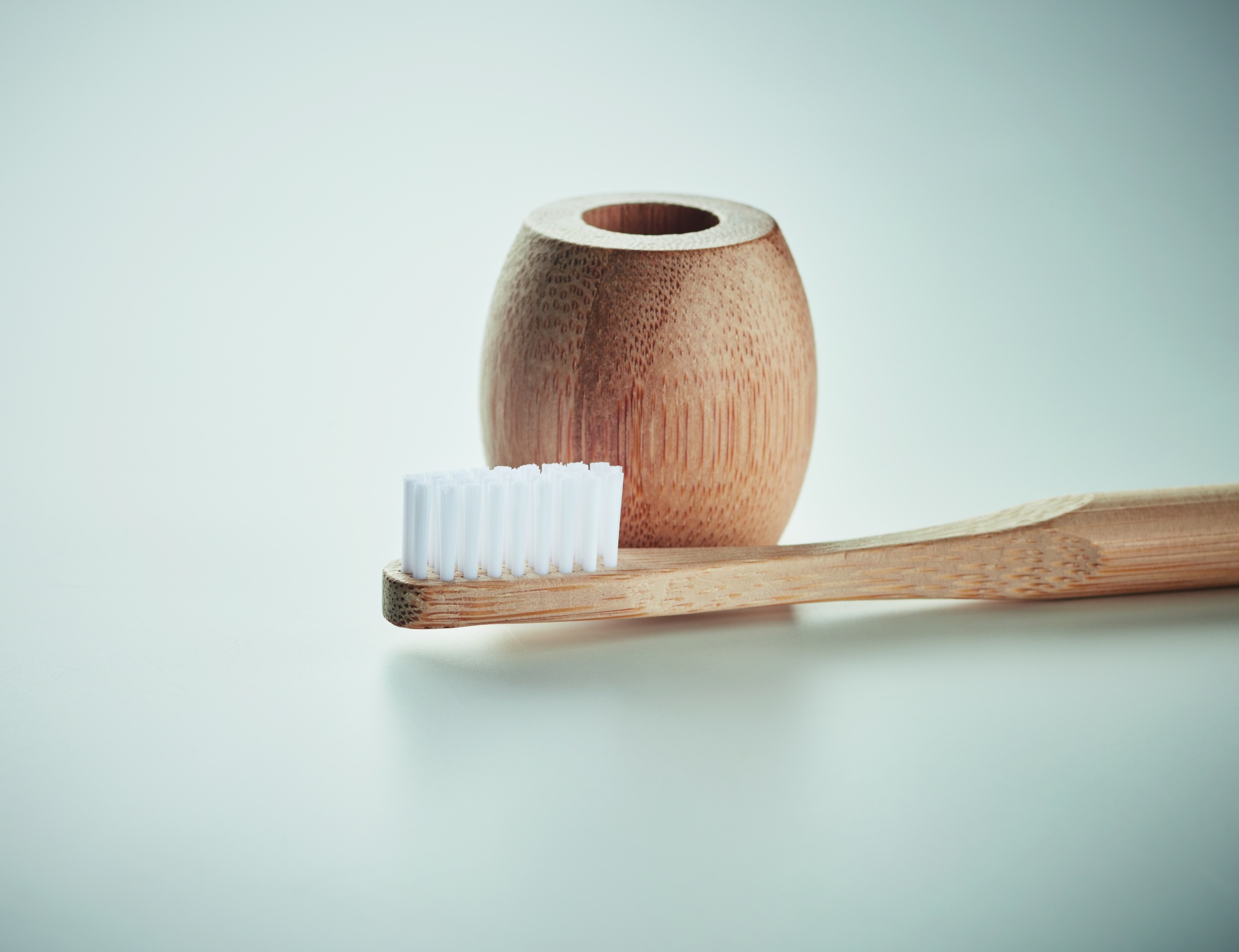 Logotrade Geschäftsgeschenke das Foto: Zahnbürste mit Halter Bambus