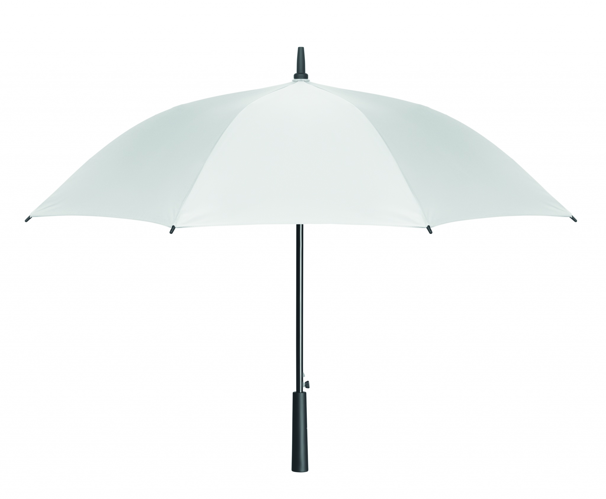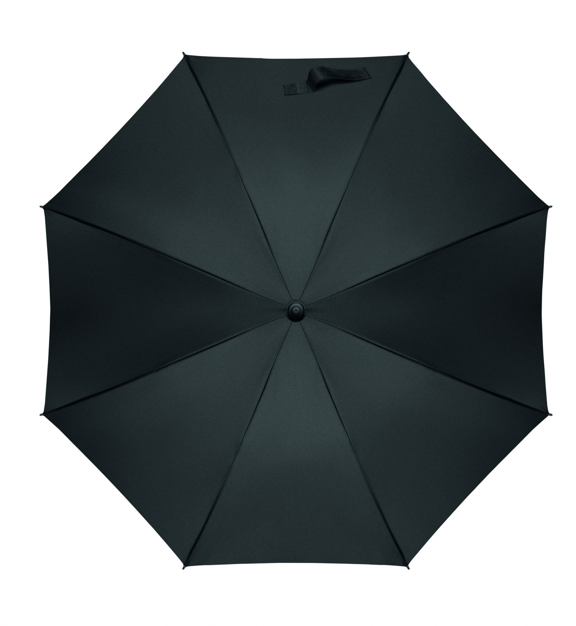 23 inch auto open windproof umbrella in 190T pongee with fiberglass frame and black plated shaft and plastic tips. ABS handle with rubber finish. Manual closure.