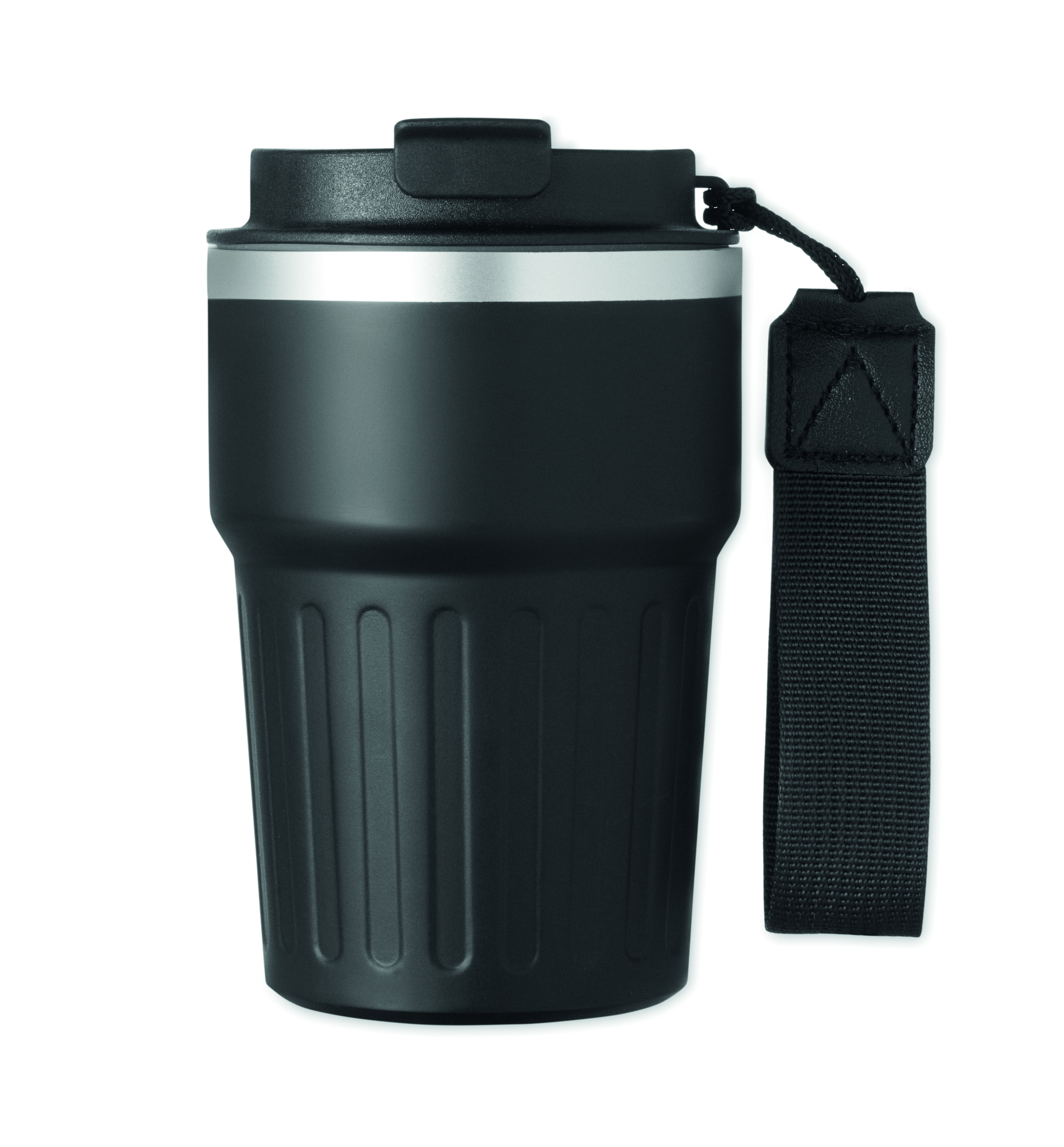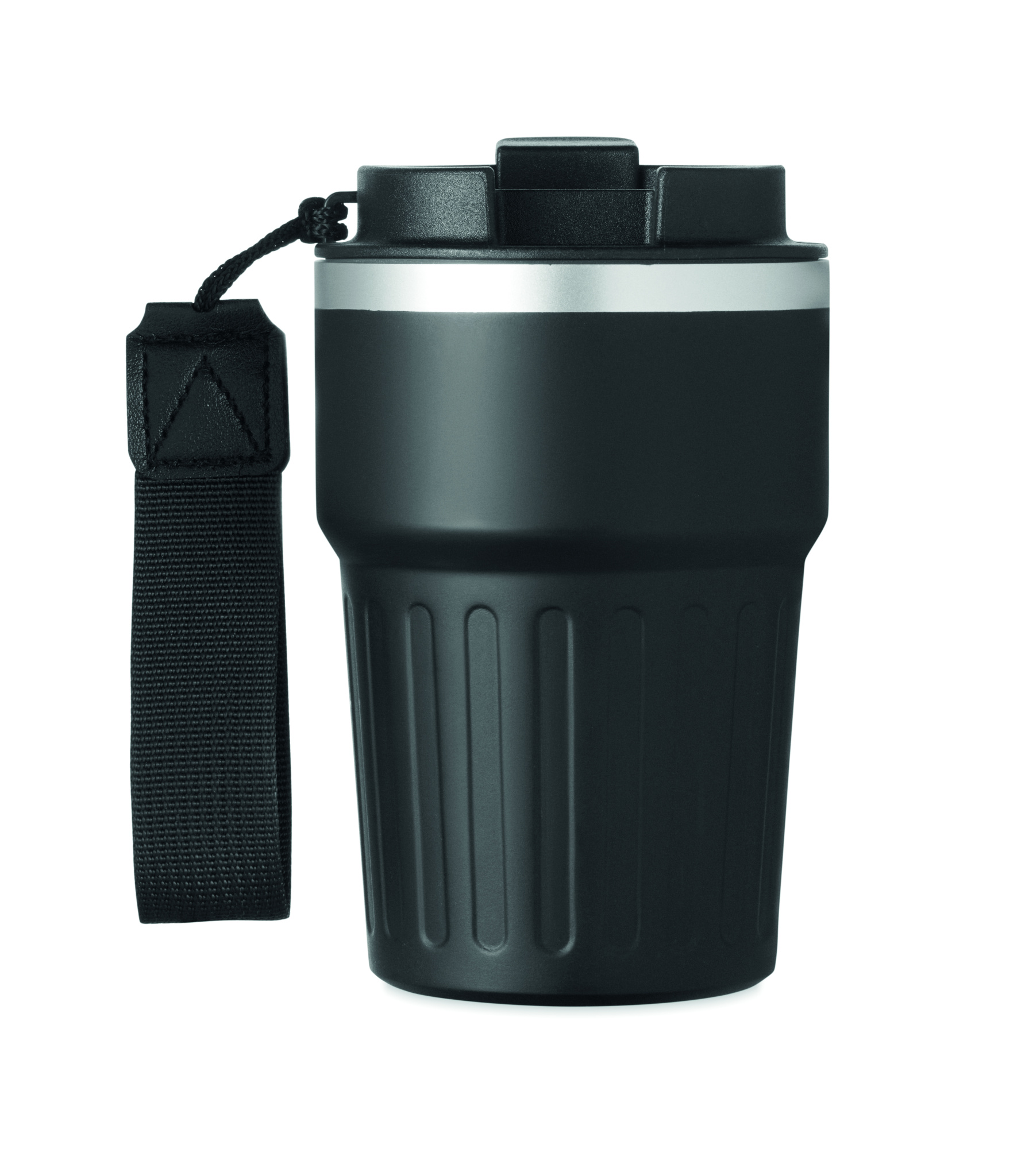 A5 notebook, recycled aluminium ballpen, and 350 ml double wall recycled stainless steel tumbler with PP sip lid and strap in gift box.