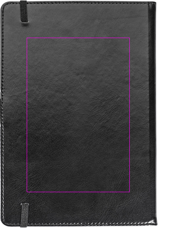 A5 notebook in leather imitation, with 80 lined pages, 4 slide-in compartments and pen loop. We will print your logo on the cover.