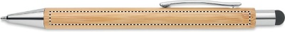 Push button ball pen in bamboo with stylus and shiny chrome fittings. Blue ink. Bamboo is a natural product, there may be slight variations in colour and size per item, which can affect the final decoration outcome.