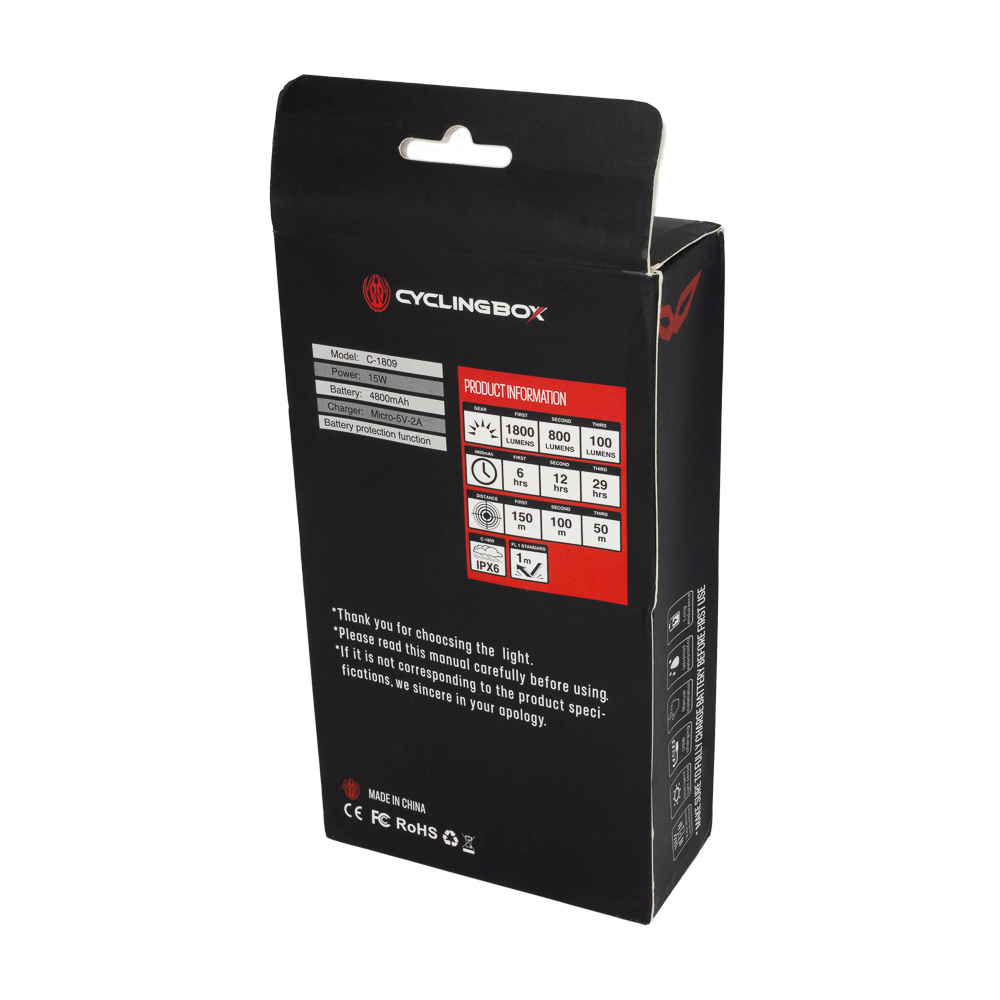 This modern USB Type-C rechargeable bike light will provide you with excellent illumination during your cycling rides, giving you a sense of safety even during nighttime trips. With its high-capacity 4800mAh battery, our bike light ensures long-lasting and reliable performance. The battery can easily deliver enough power to light up your way for an extended period without the need for frequent recharging.