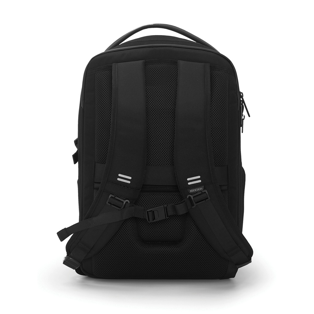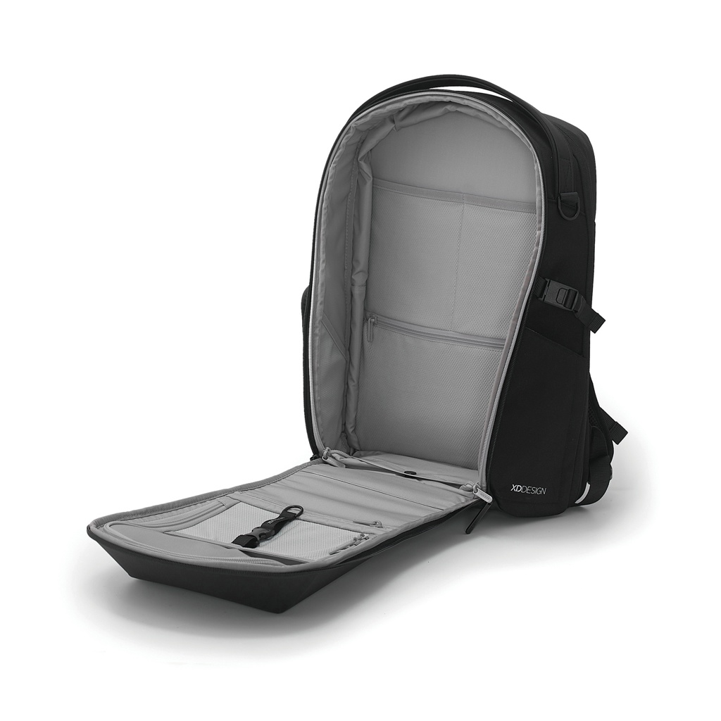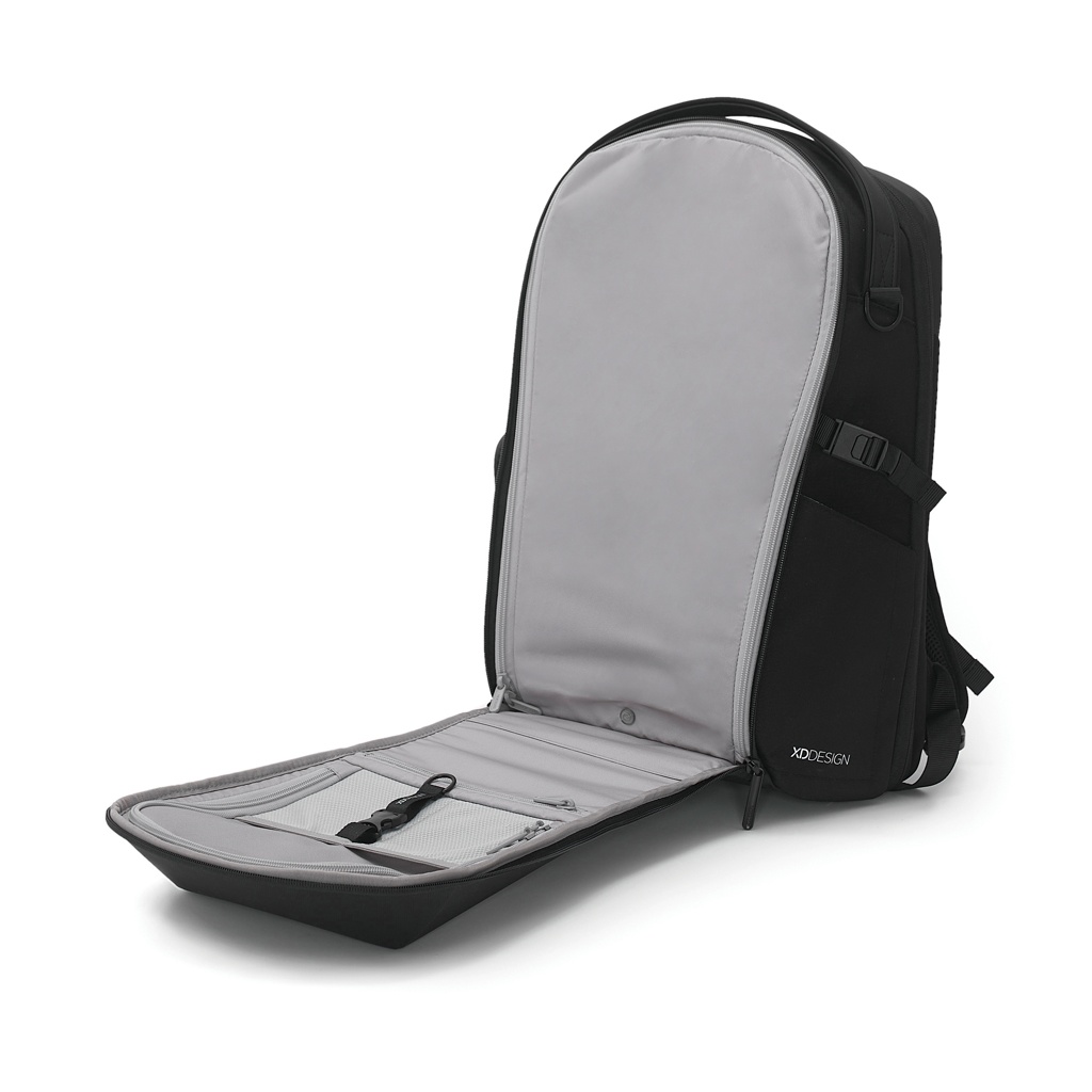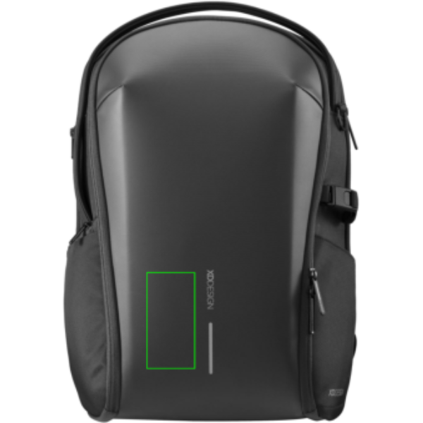 The Bizz Backpack is perfect for daily carry and light travel. The backpack features a 180-degree opening main compartment with an expandable section, internal mesh pockets, an integrated tech pouch and a detachable key leash. The rear pocket is protected with a waterproof zipper and features a padded sleeve for up to a 16” laptop. External easy access pockets are abundant including a high capacity water bottle pocket with a magnetic closure. The backpack is water-resistant and produced with recycled materials. Made from R-pet fabric with the AWARE™ tracer. With AWARE™, the use of genuine recycled fabric is guaranteed. 27% recycled content. Registered design®