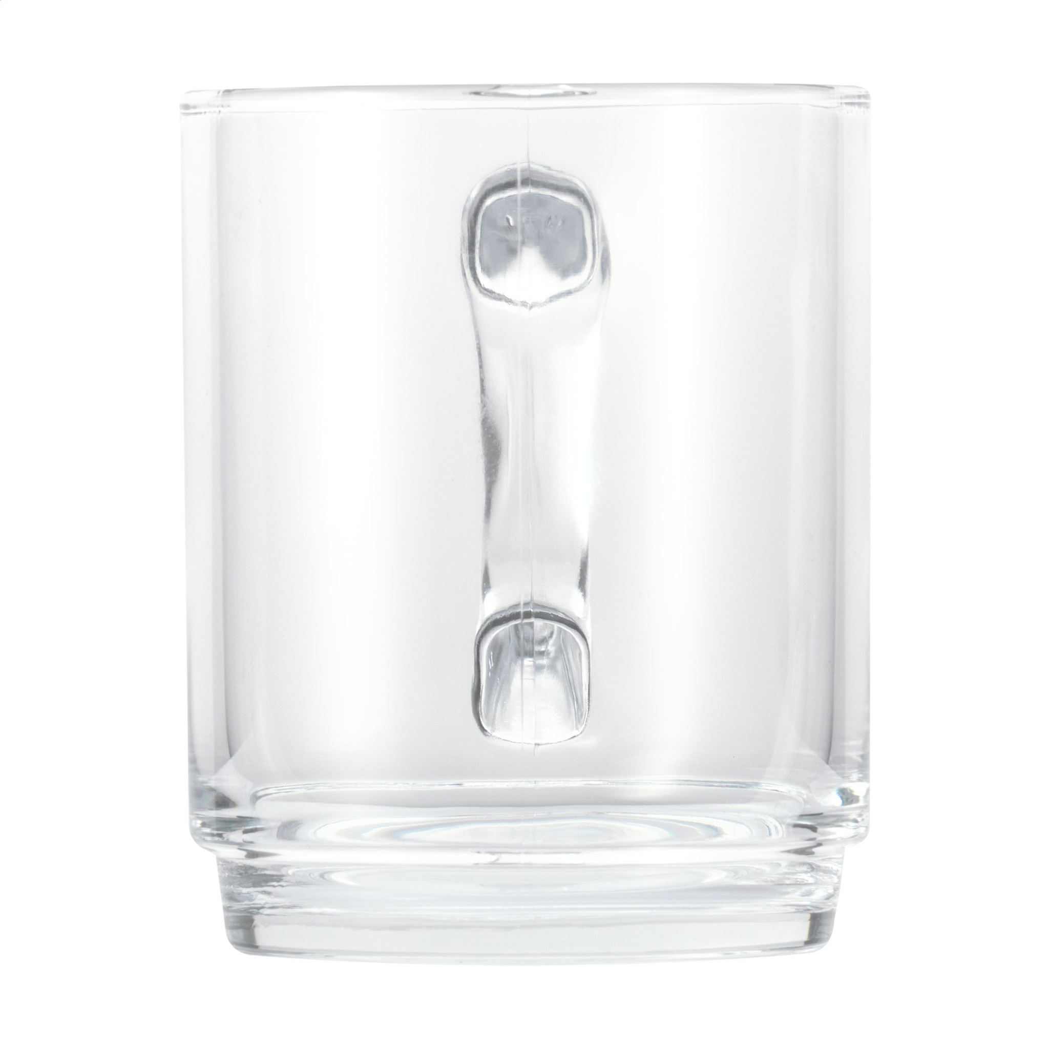 Stackable tea glass made of strong, thick glass. With large handle. Capacity 250 ml.