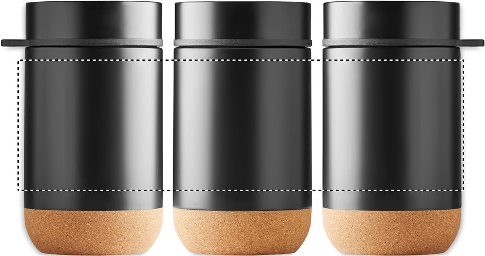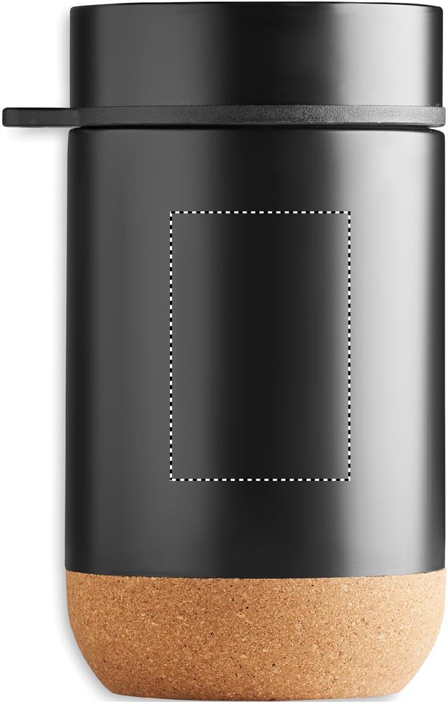 Double wall stainless steel insulated storage jar with a screw top and cork base detail. Includes spoon. Capacity: 400ml. Cork is 100% natural material. Due to its structural nature and surface porosity the final print result per item may have deviations.