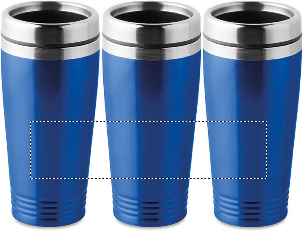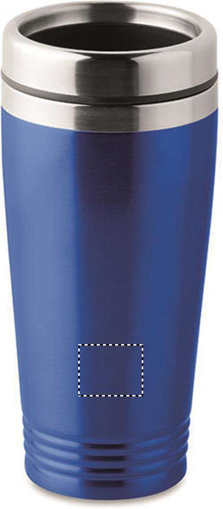Double wall stainless steel travel cup with black PP lid. Capacity: 400 ml.