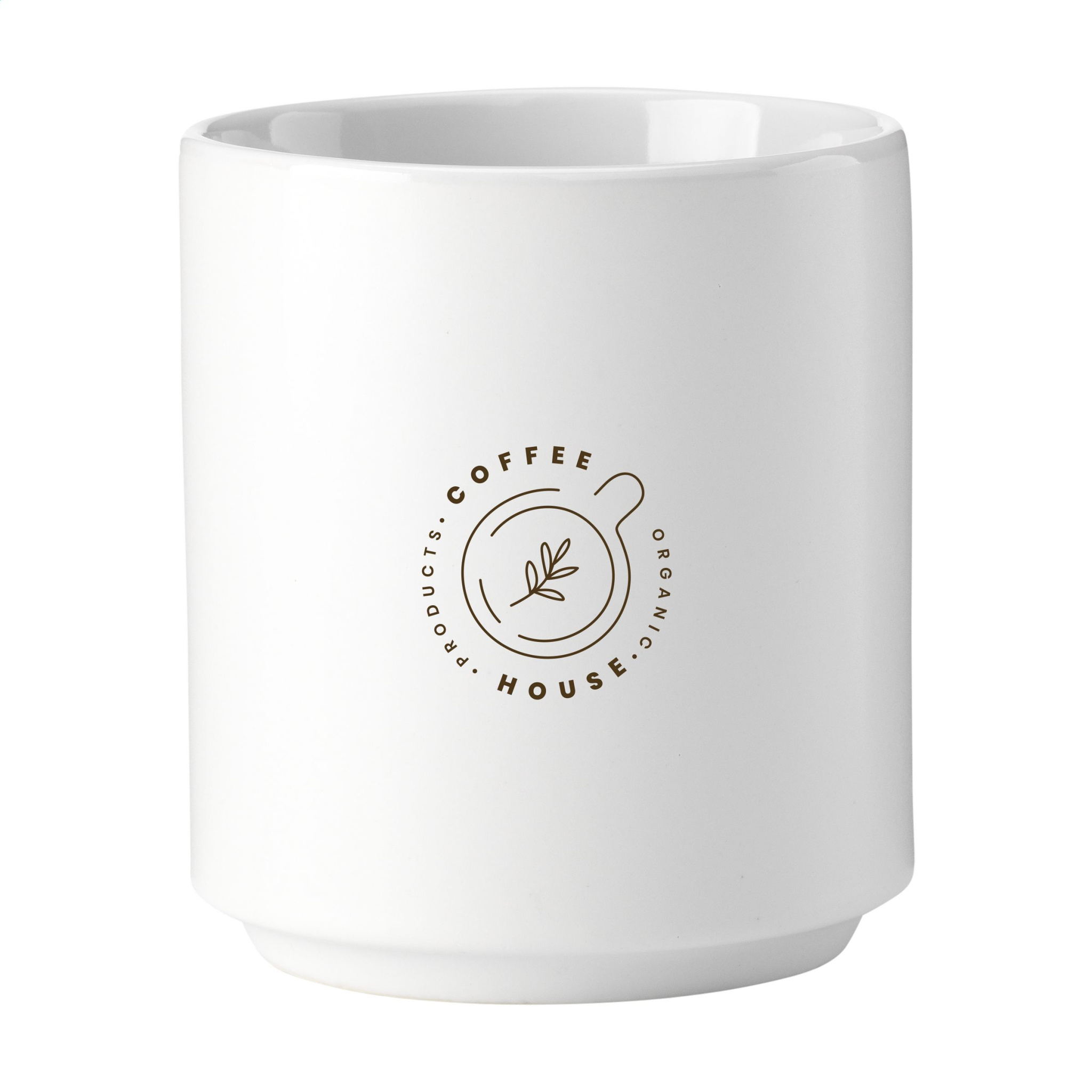 Stackable mug without handle, in a timeless design. Made of high-quality ceramics. Finished with a matt outside and high-gloss interior. Suitable for most coffee machines. Dishwasher-safe. The imprint is tested and certified dishwasher-safe: EN 12875-2. Capacity 200 ml. NOTE: The white mug cannot be laser engraved because it is not sufficiently visible.