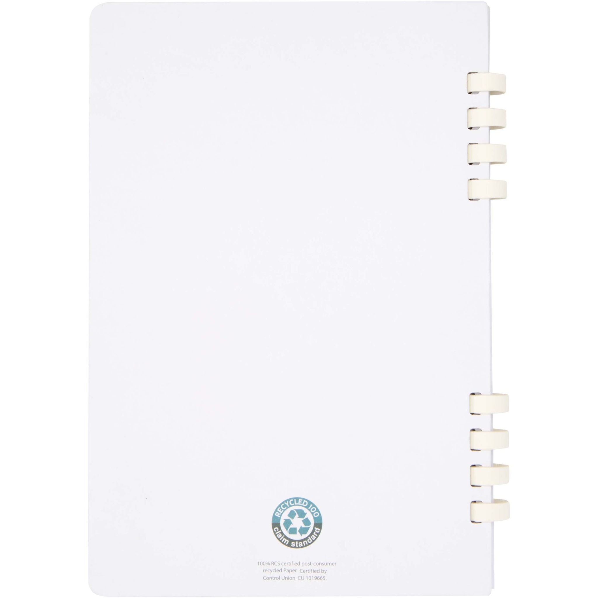 The Fil A5 hardcover spiral notebook with 60 lined sheets is made of 70 g/m² RCS certified recycled paper. Made entirely from recycled materials, it’s a practical option that’s easier to dispose of and recycle after use.