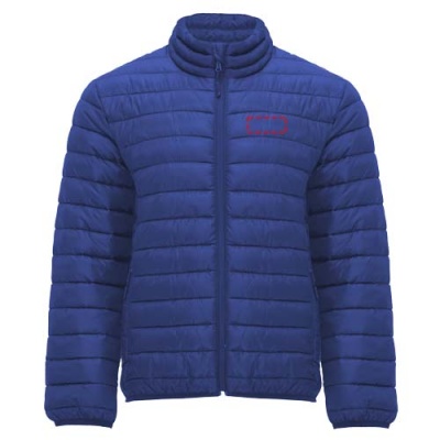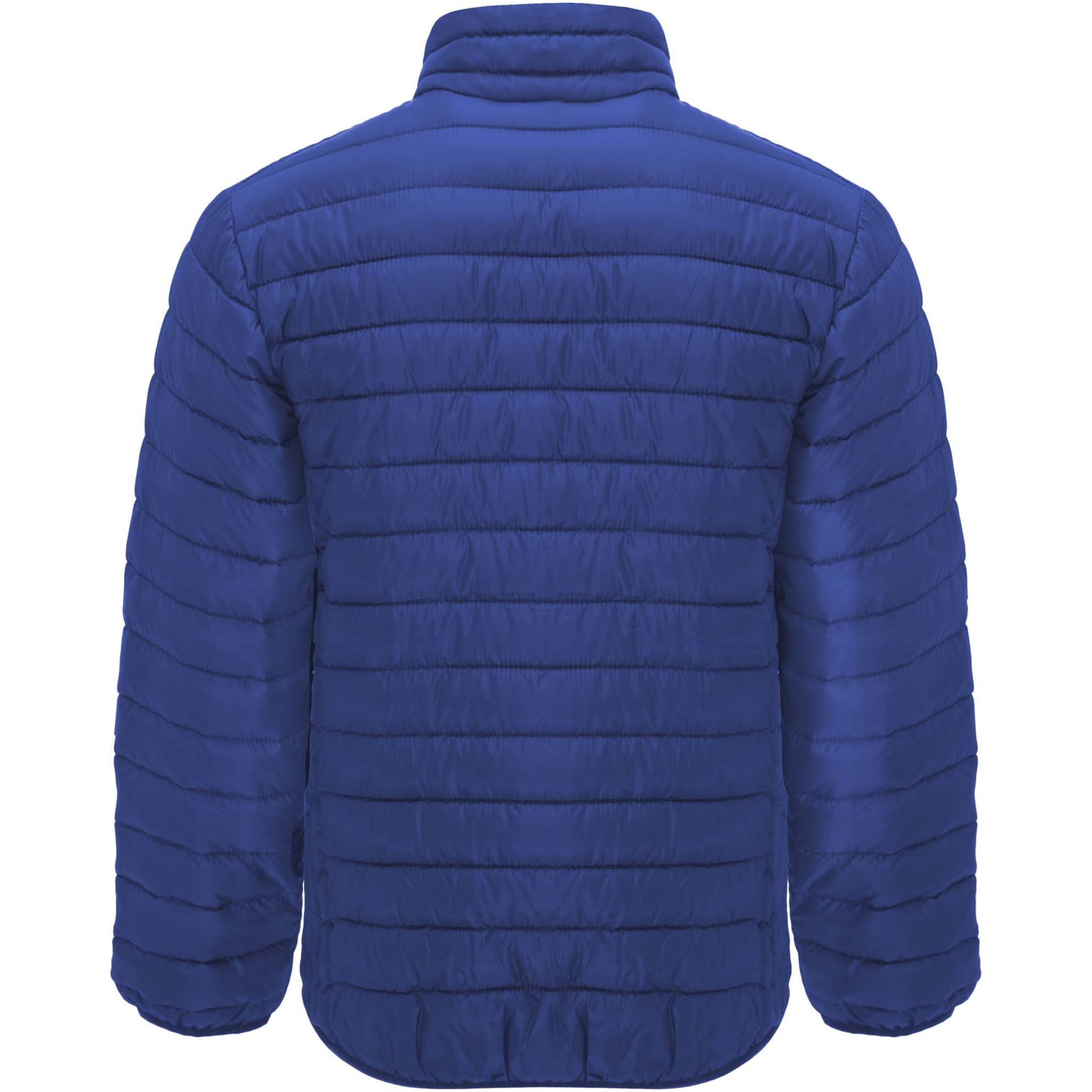 Men's quilted jacket with feather touch padding. Inverted zippers with matching chin protector and puller. Two front pockets with zippers. Matching elastic edging in collar, cuffs and hem. Contrasting inner lining. Includes stow carry bag. Lightweight and foldable garment. Removable label. Water resistant. Wind-proof. The model is 184 cm and is wearing size L.