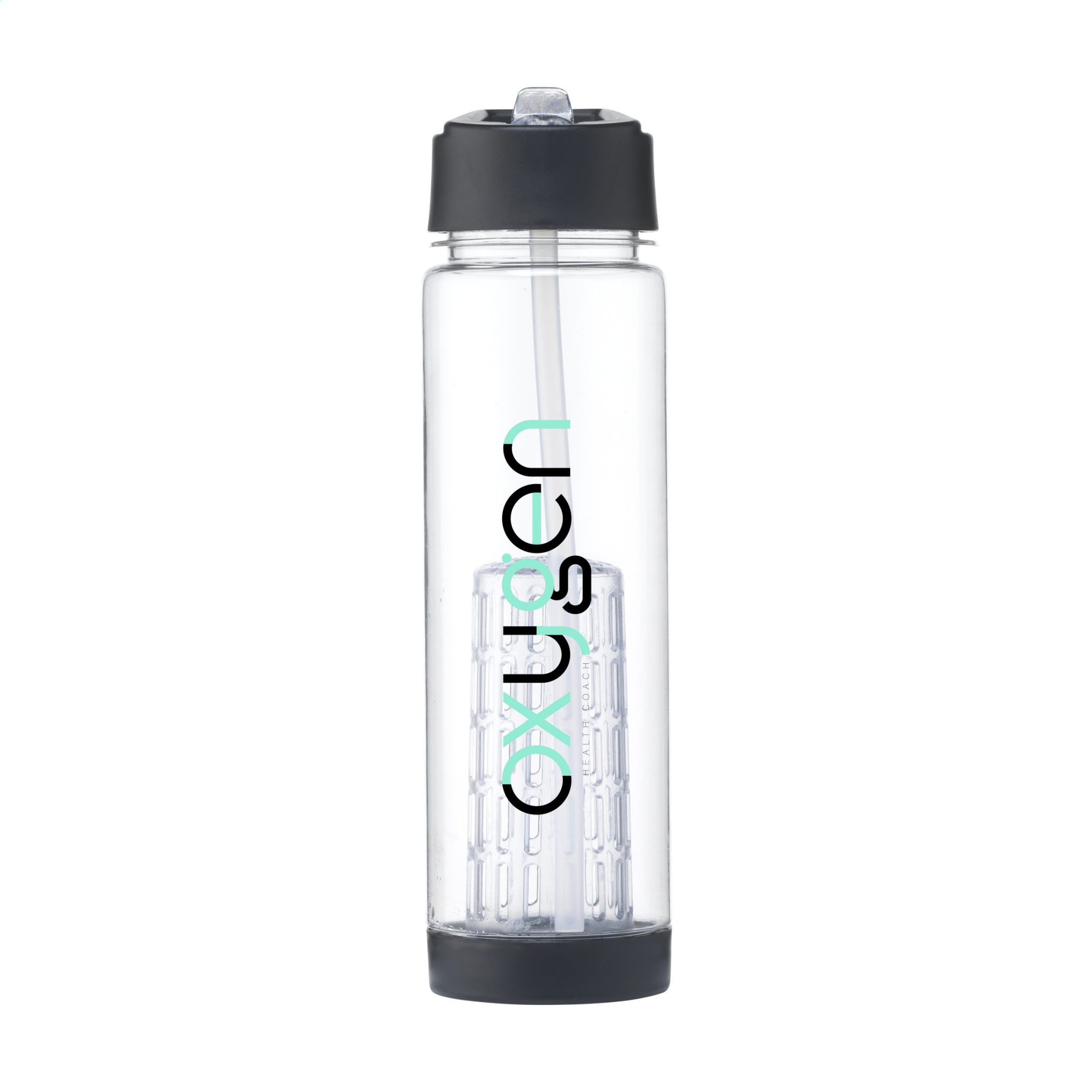 Water bottle with infuser, practical screw cap and folding drinking straw. Fill the generous infuser compartment with fresh fruit to flavour your water and create your own taste sensation. The filter is easy to clean and the bottle is durable and sturdy. This bottle is made from BPA-free PETG plastic, ensuring the bottle remains odour-free and protected against stains. Leak proof. Capacity 700 ml.