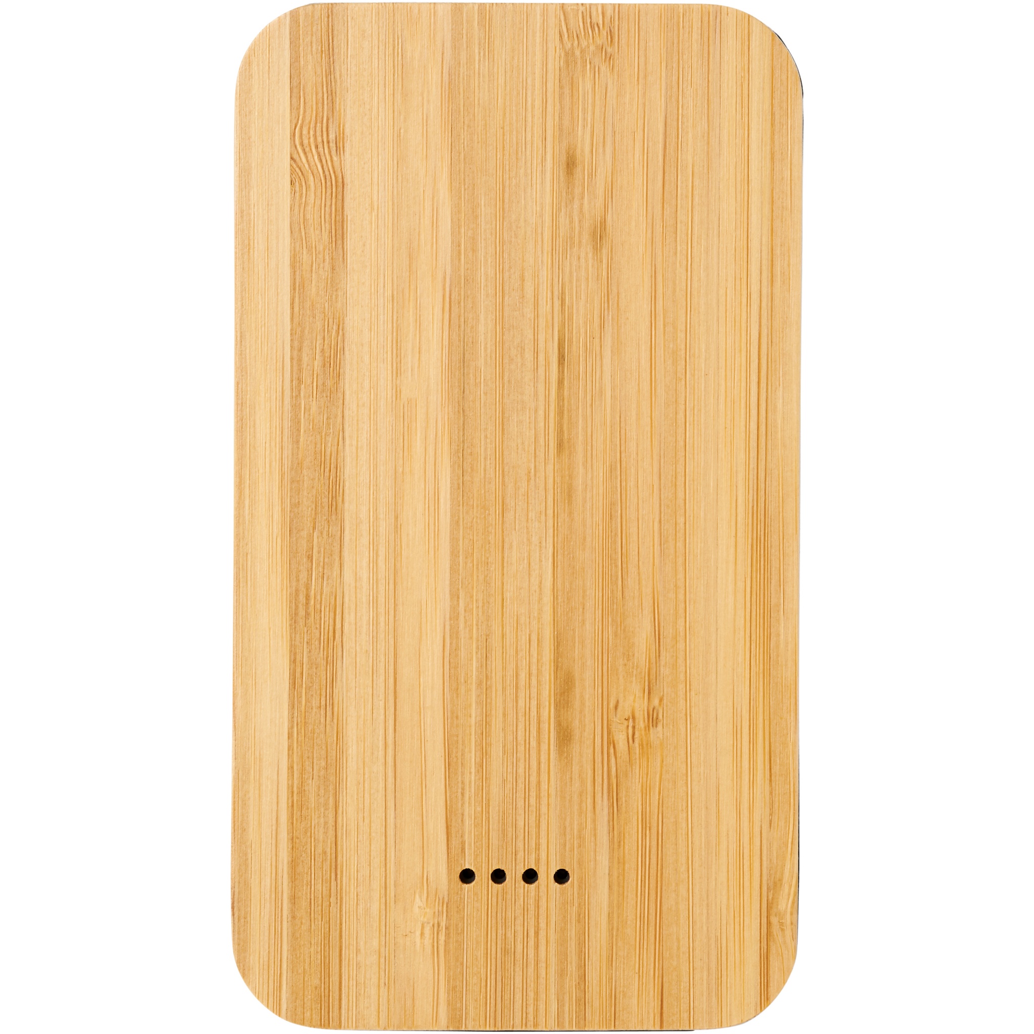 Future 6000 mAh bamboo/fabric wireless power bank, Natural / Solid black
