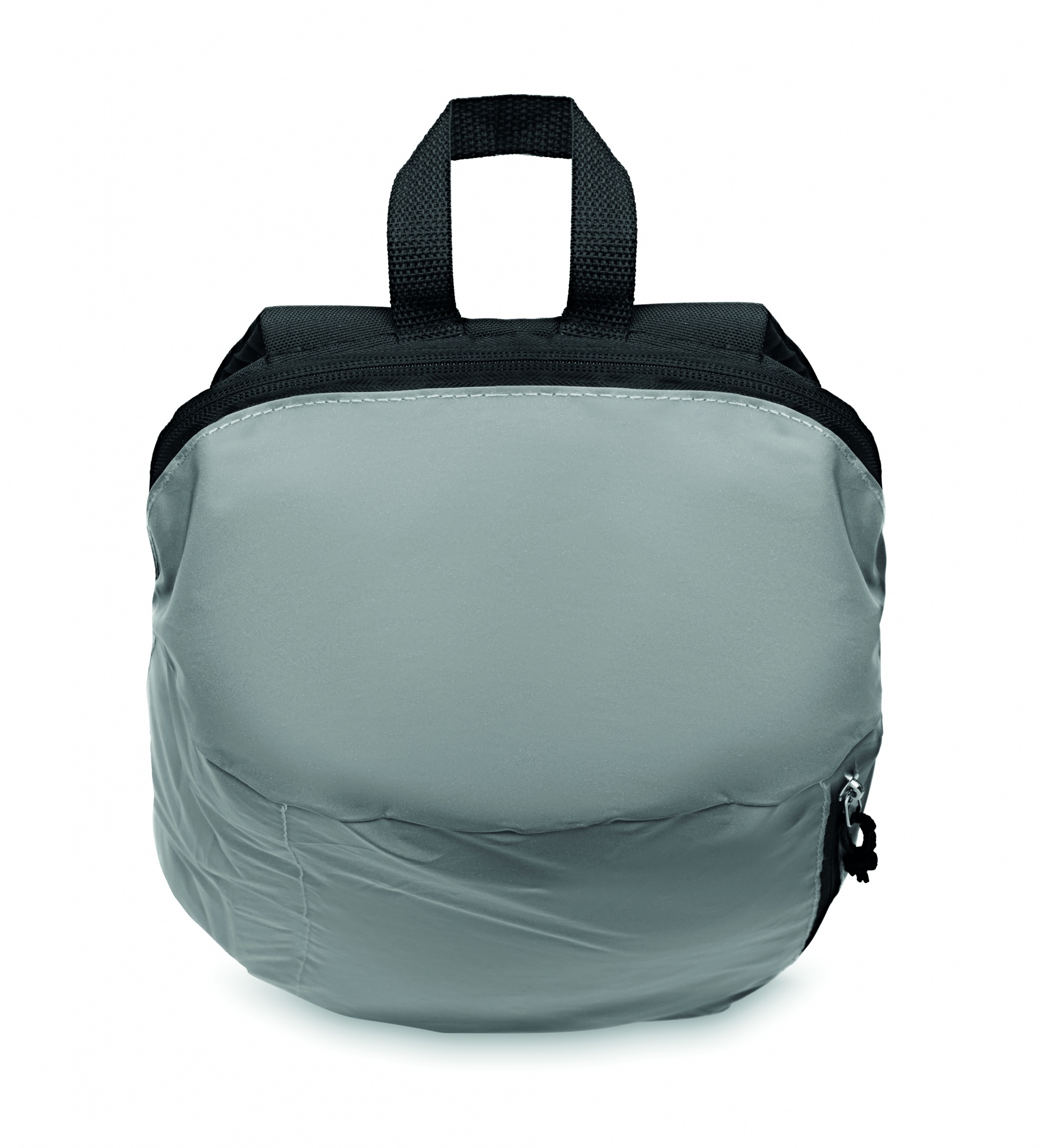 Backpack with the front in high reflective polyester with zippered outside pocket and for comfort a padded back section in 600D polyester.