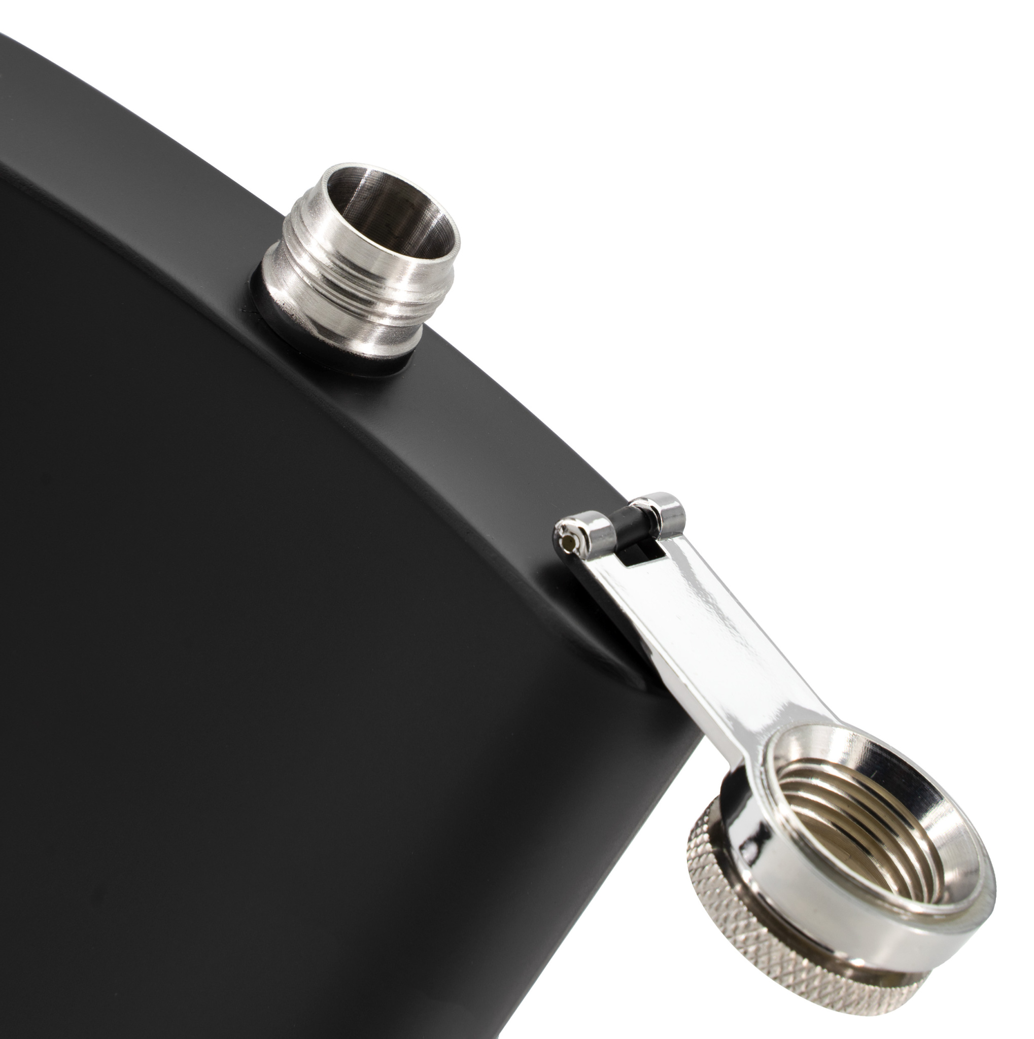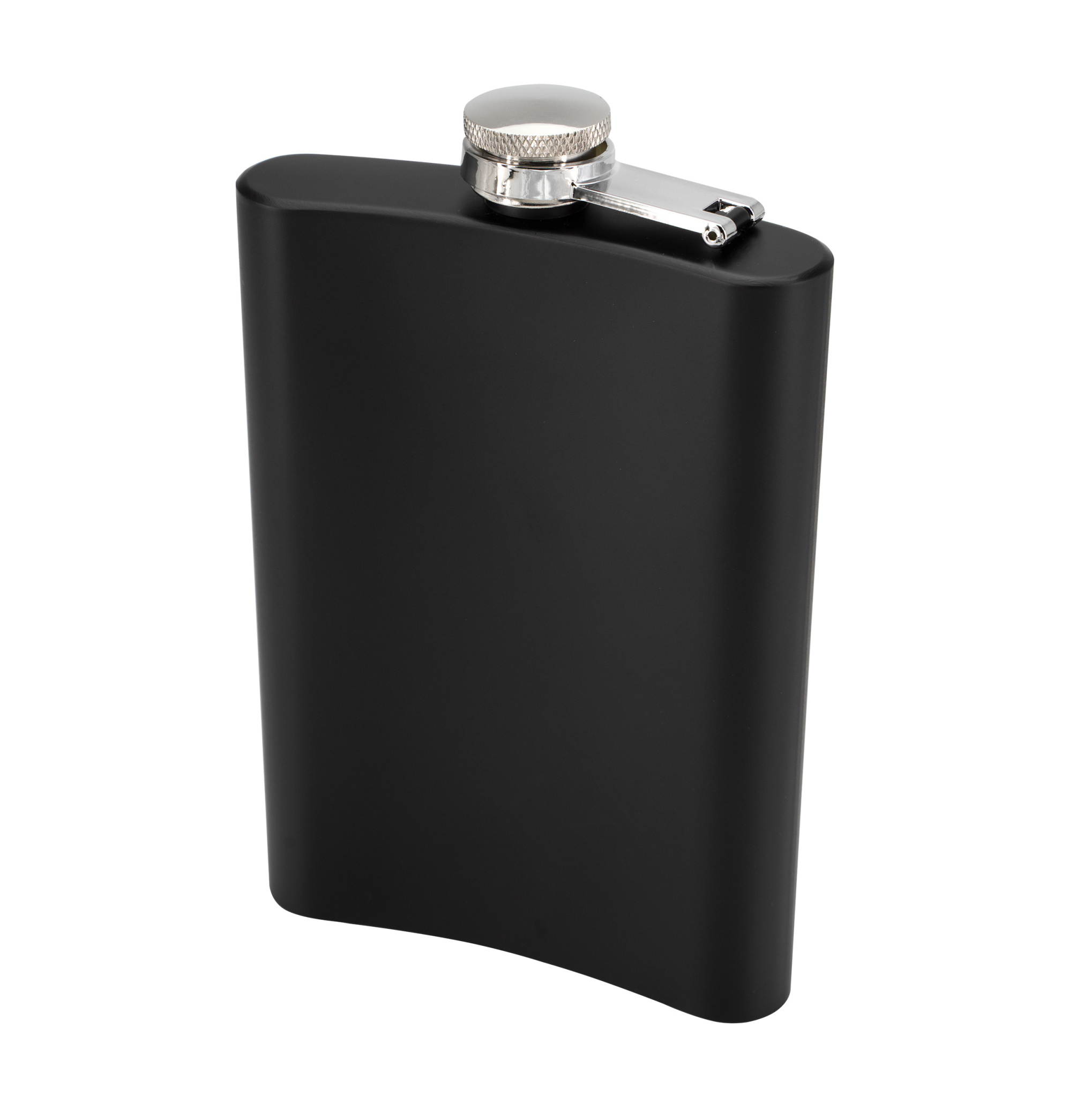 Hip flask in a simple black design with capacity of 237 ml. Made of stainless steel.