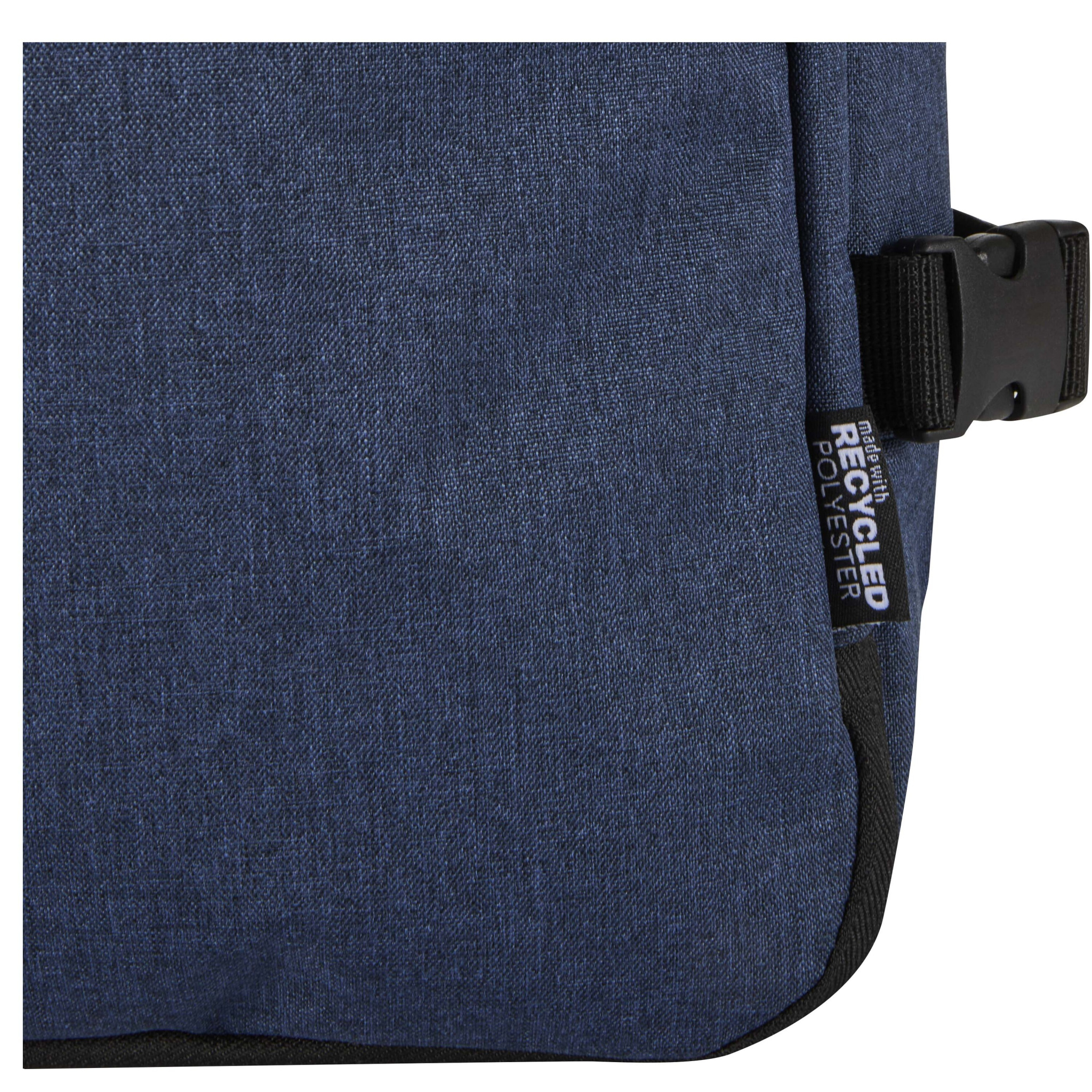 Made from GRS certified recycled polyester with an RPET lining, the Libra 17" carry-on backpack is designed to comply with airline cabin luggage requirements, making it an ideal travel companion. It includes a dedicated laptop compartment for devices up to 17", a spacious main section with elastic straps and mesh dividers to keep belongings secure and organised, and two large front zippered pockets for easy access to essentials. For comfort and convenience, the backpack features a breathable back panel, a trolley strap, adjustable shoulder straps with a cross-chest strap, and both top and side handles for versatile carrying options. Suitable for business trips, remote work, or weekend travel, this backpack combines a sleek design with practical functionality for life on the move.