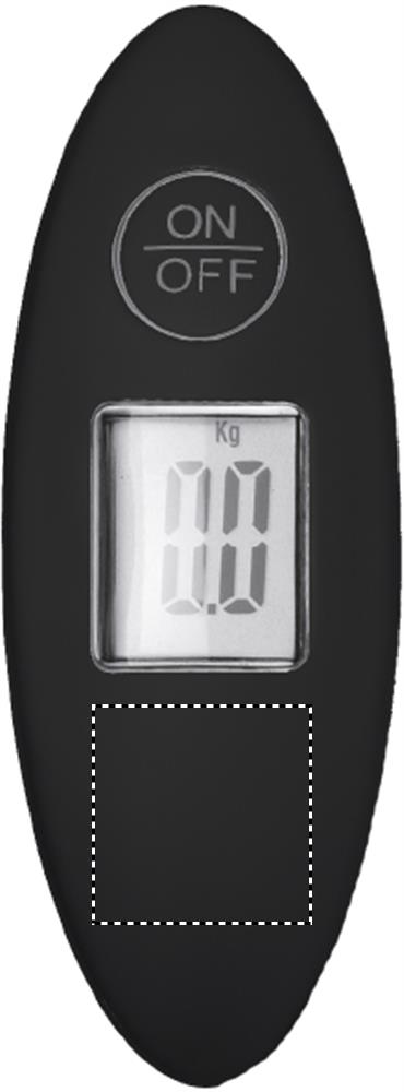 Luggage scale in ABS casing. Maximum capacity measure: 40 kg. Unit measure in kilogram or pounds. Powered by 1 cell battery included. Individual packaging in silver carton box.