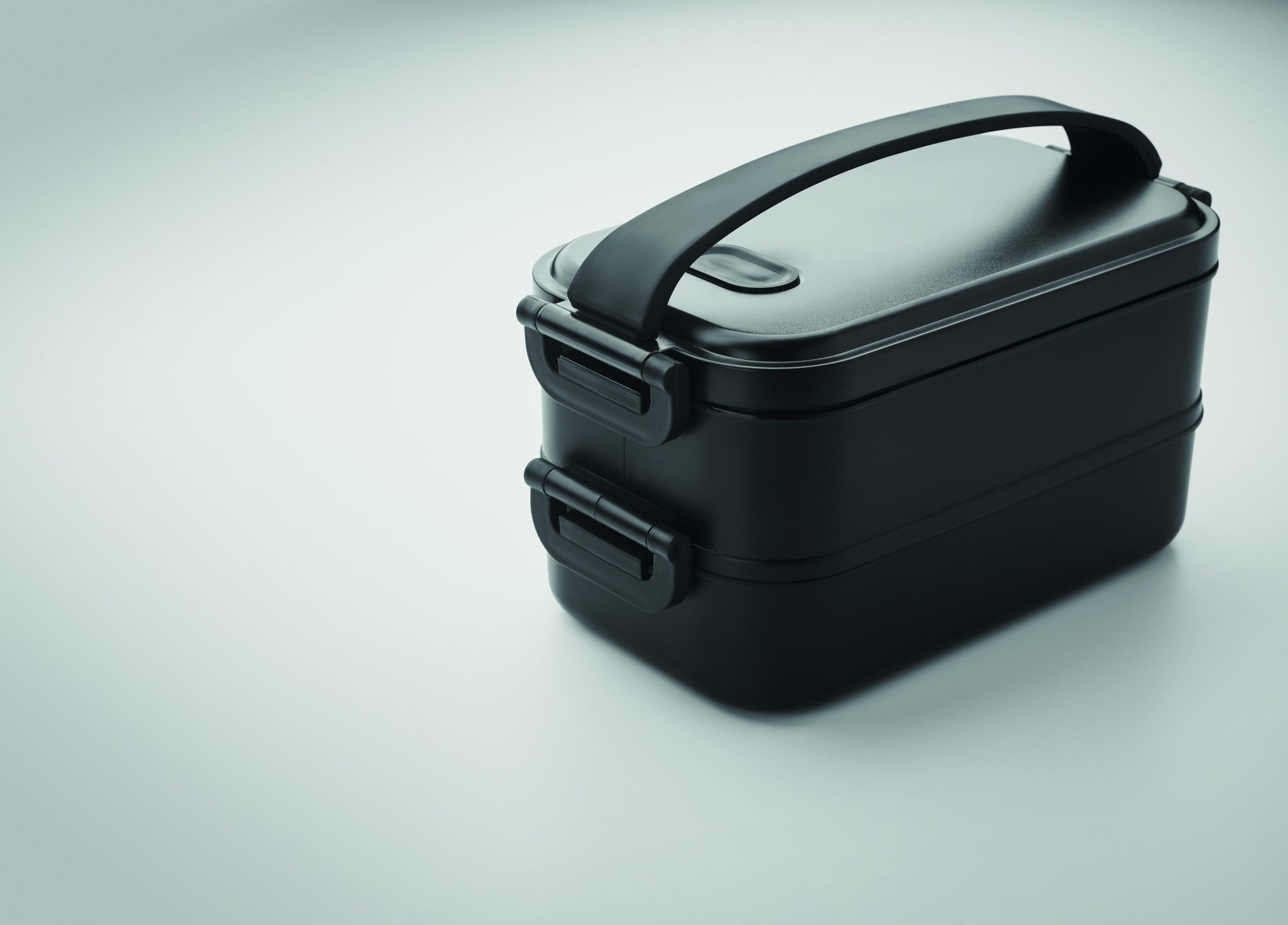 Recycled PP two-tier lunch box with removable divider with side buckles and airtight lid. Capacity: 800 ml (2x).
