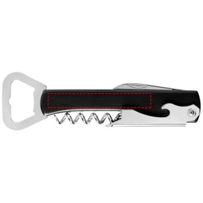 Waitress knife with bottle opener, corkscrew and foil cutter.
