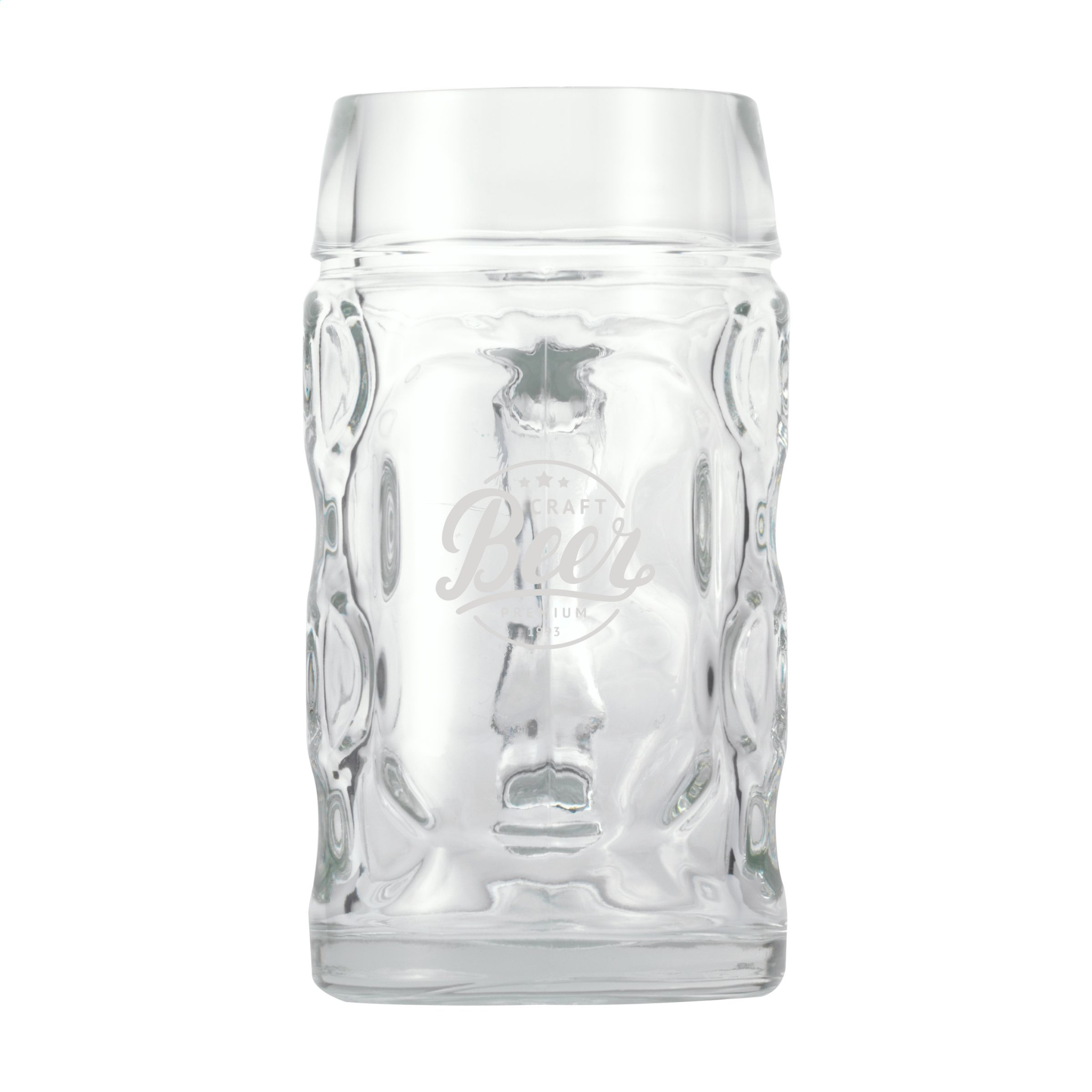 Extra large glass beer tankard with handle. Suitable for restaurants and clubs, as well for a striking promotion during the October (beer) parties. Capacity 500 ml. Made in Europe.