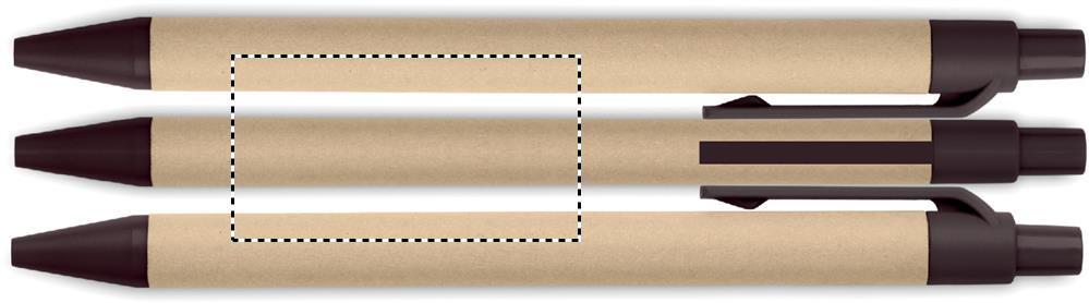 Push button paper barrel ball pen with parts made of 40% coffee husk and 60% ABS. Blue ink.