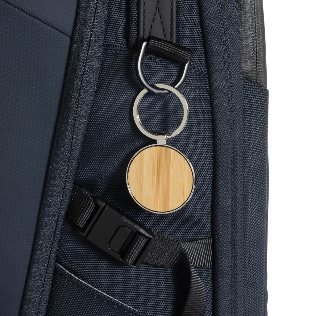 Products Bags RCS recycled zinc alloy round keychain with bamboo