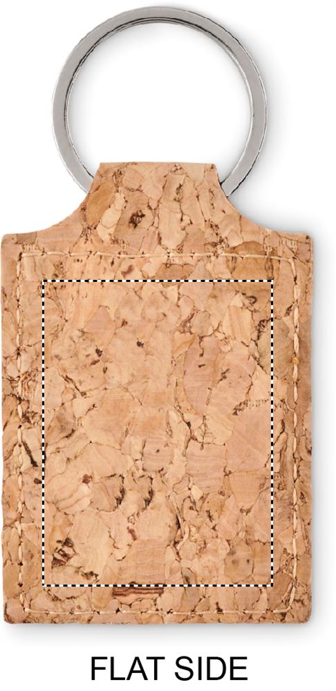 Rectangular cork key ring. Cork is 100% natural material. Due to its structural nature and surface porosity the final print result per item may have deviations.