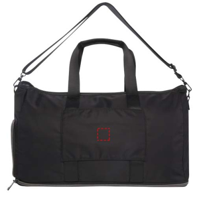 The Rhine expandable duffel bag effortlessly transforms itself with style for varied occasions with its sleek design and versatility. Crafted with high-quality GRS certified recycled nylon, soft RPET lining, and premium PU leather elements. The duffel bag features a spacious main compartment with a large leak-proof TPU pocket, 2 sleeve pockets, a dedicated shoe compartment, a secure hidden pocket on the back (doubling as trolley strap), and detachable shoulder straps that can be adjusted for maximum comfort. What truly sets this duffel bag apart is the expandable layer, which can be extended up to 42 litres capacity. Capacity: 35-42 litres. Resistance up to 20 kg weight. PVC free.