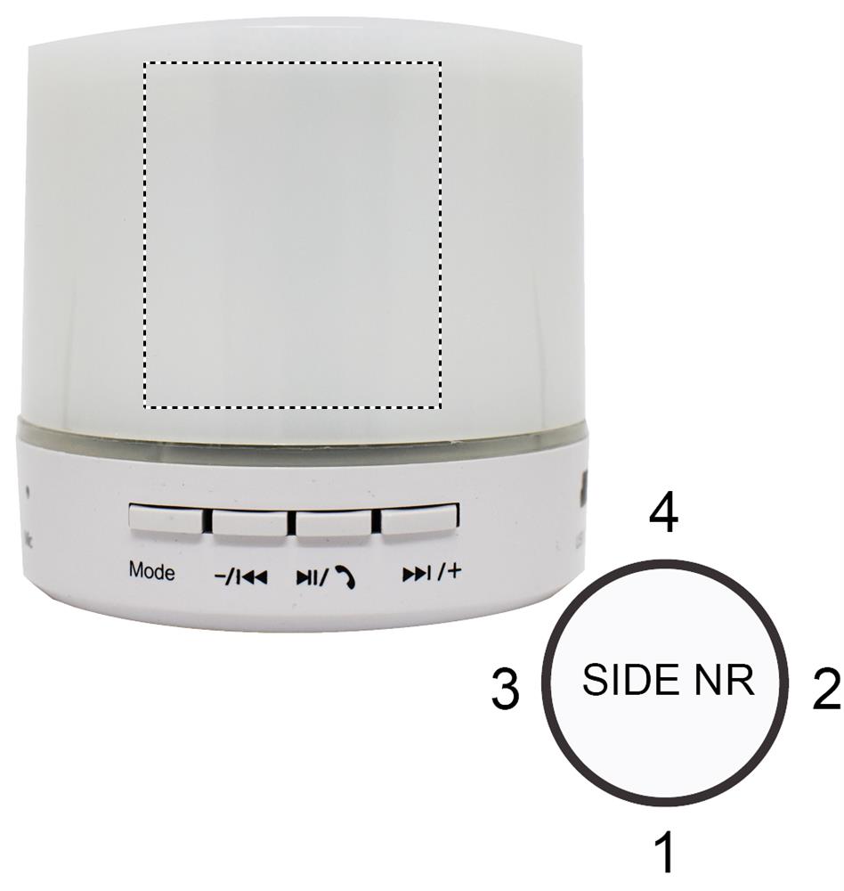 2.1 wireless speaker with LED light indication in ABS. 3 colours changing light. 1 Rechargeable Lithium 450 mAh battery included. Includes a SD card port and an AUX/ USB cable. Hands free call function. Output data: 3W, 4 Ohm. Playing time aprox. 2h.