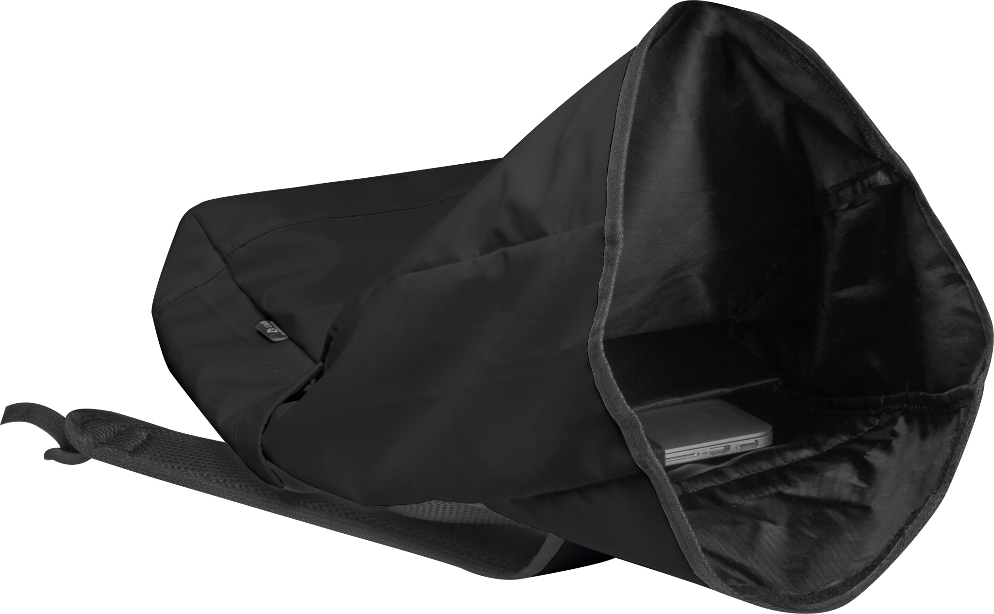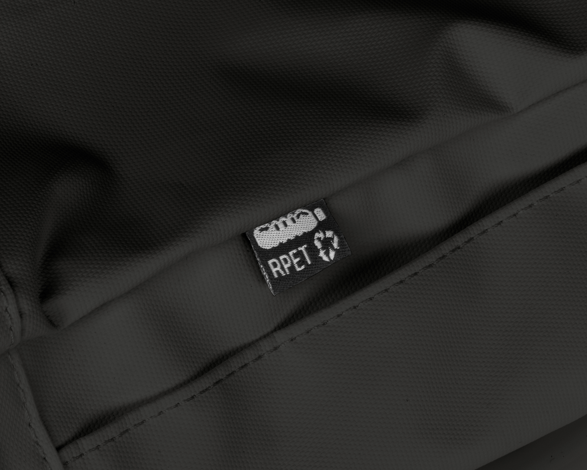 Backpack made from recycled PET. In addition to a large inner compartment with laptop sleeve, padded back, carrying handle, two adjustable padded shoulder straps, zipped front compartment, adjustable closure, Velcro closure on the top, it also has two side pockets on the outside. We will print your logo in the centre front.