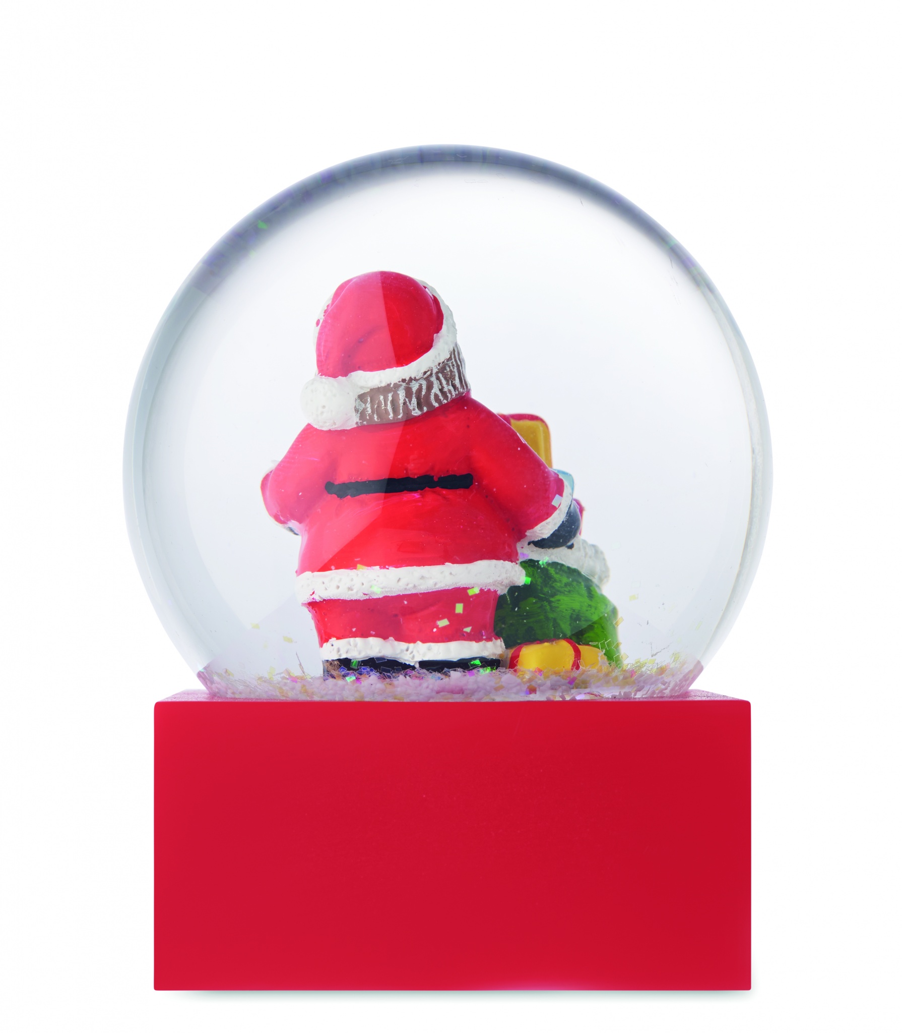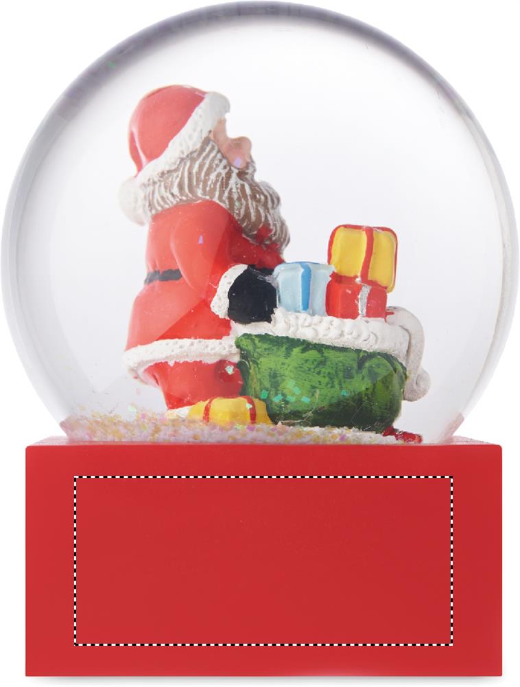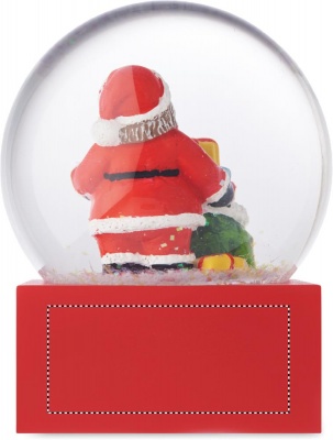 Christmas glass snow ball ornament with polyresin base.