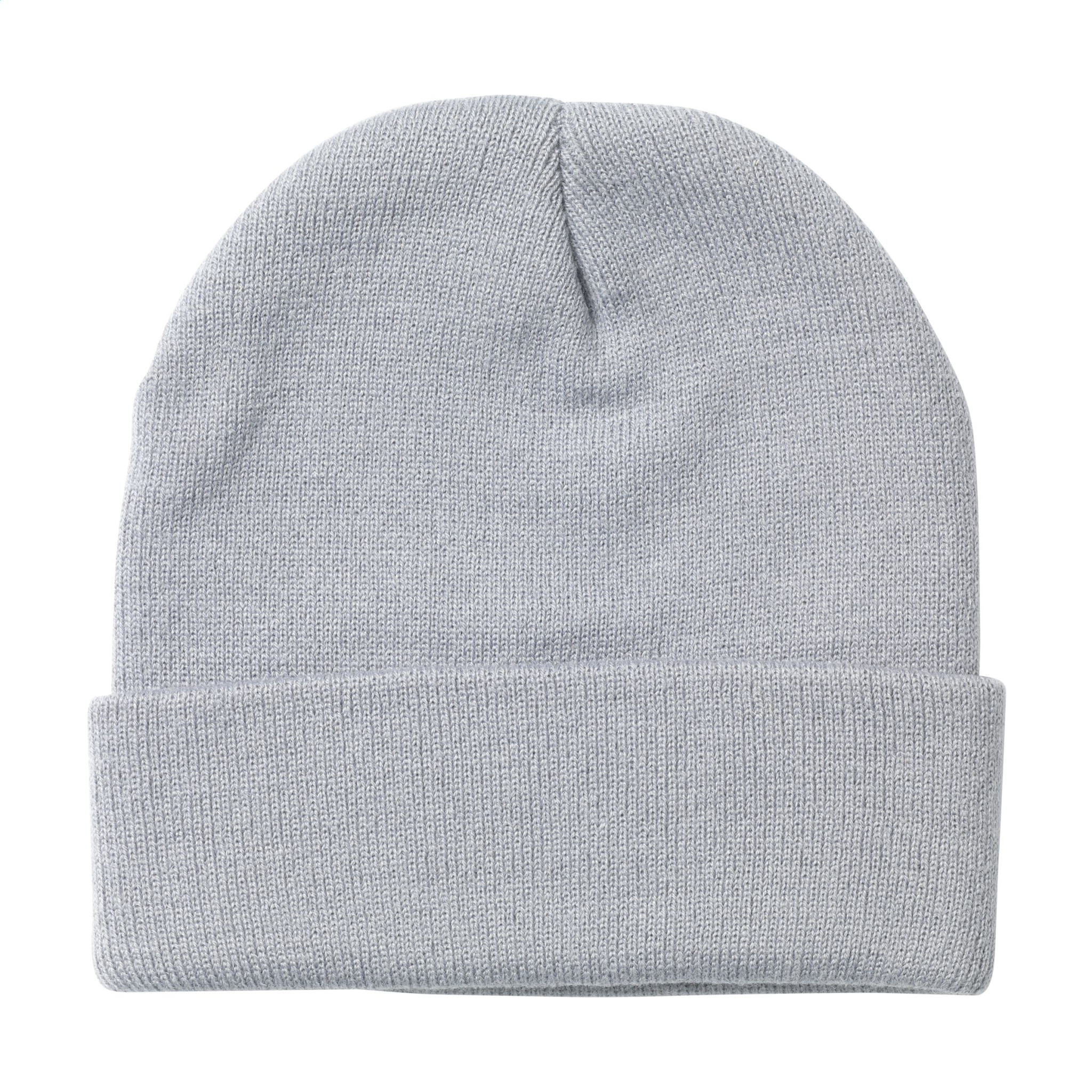WoW! Knitted hat with fold over. Made from 100% RPET polyester. A popular item, keeps you nice and warm with good quality material. One-size. With black label for decoration. GRS-certified. Total recycled material: 100%.