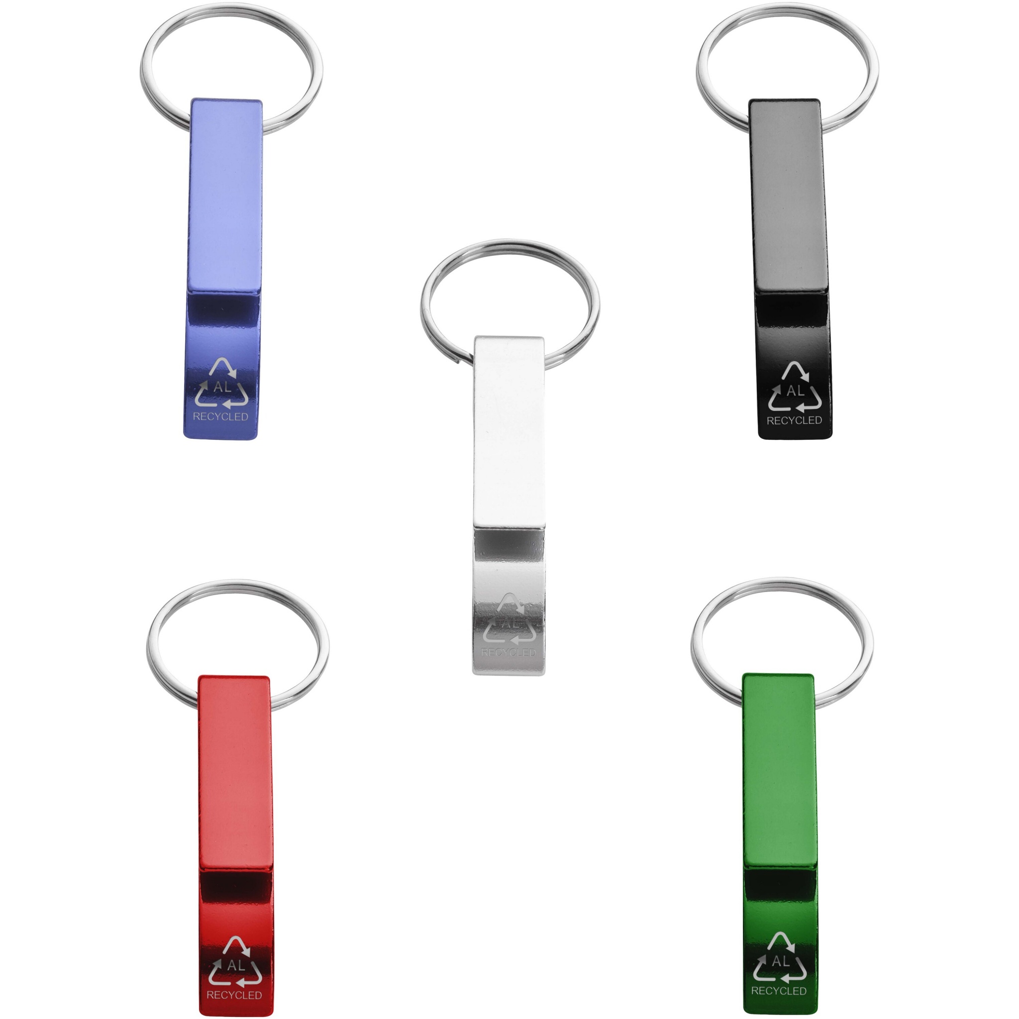 Logo trade promotional gifts image of: Tao RCS recycled aluminium bottle and can opener with keychain