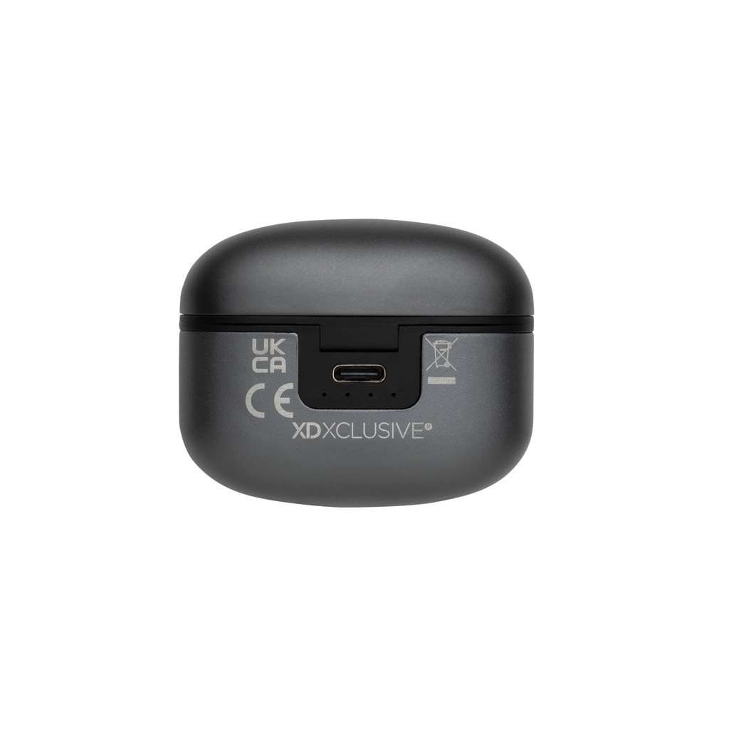 Wireless earbuds with clear sound and strong bass. Made with RCS (Recycled Claim Standard) certified recycled aluminium and ABS. Total recycled content: 64% based on total item weight. RCS certification ensures a completely certified supply chain of the recycled materials. Aluminium does not lose its characteristics in the recycling process and can be recycled endlessly. Including recycled type C charging cable made from RCS certified recycled aluminium, TPE and PET. The earbuds have a 40mah battery that allows a playtime up to 5 hours and can be fully re-charged in 1.5 hours via the 300 mah charging case. With BT 5.3 for smooth connection up to 10 metres. Packed in FSC® mix packaging. Item and accessories 100% PVC free.