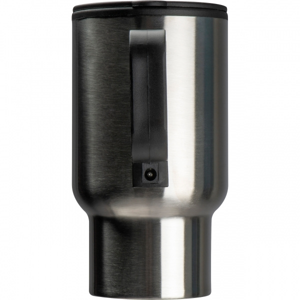 Stainless steel mug with USB connection for keeping warm and a capacity of 400ml. Perfect for the car or the workplace. We laser your logo to the left of the handle.