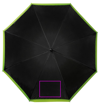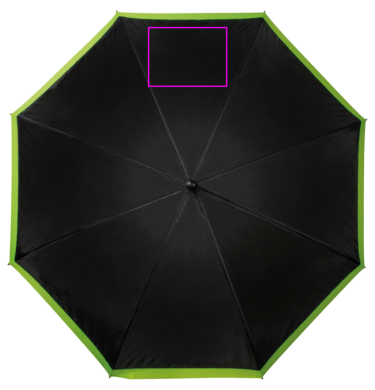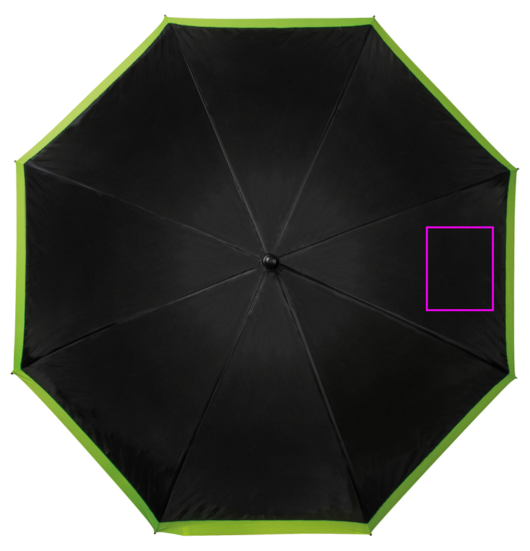 Large umbrella which will draw attention to itself and your logo thanks to its black-neon and yellow color contrast (190T polyester.) We print your logo on a segment.