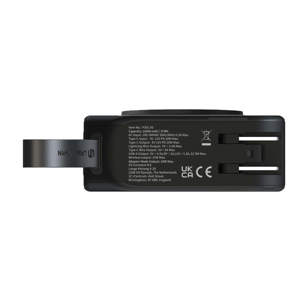 Saratoga 5 in 1 universal charger is the ultimate portable charger, equipped with interchangeable adaptors for seamless travel. Boasting a robust 10,000mAh battery, it provides extended usage time for your devices. With super-fast 15W integrated magnetic charger for the most recent IOS phones and newest generation Android phones. Moreover, it incorporates a built-in cable tailored for IOS devices and a USB-C cable to facilitate the charging of Android devices and new generation IOS devices. With its rapid PD 20W USB-C capability, you can recharge your PD-enabled device up to 50% in under 30 minutes. Includes AU, EU, UK, US & Asia adaptors. The charger can charge up to five items at the same time and the powerbank itself is charged while you charge your mobile devices when inserted into a power socket. So always wake up in the morning with a fully charged phone and a fully charged powerbank. Urban Vitamin items are made without PVC and packed in plastic reduced packaging.