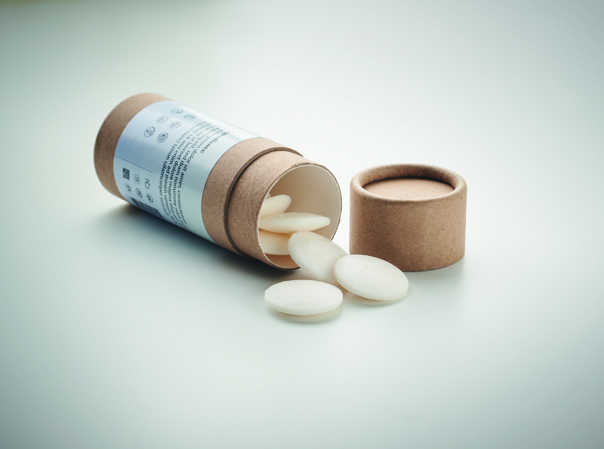 Unisex weekend bar by Branded By Earth. Includes 12 pieces of vegan body wash 4 gr each. Presented in recycled paper tube. Made in EU.