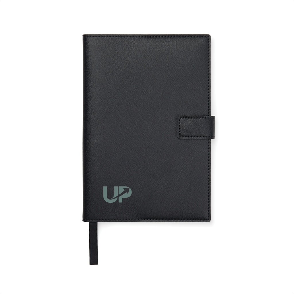 Experience functionality and style with Timo. It strikes the perfect balance of size and durability. Featuring a PU cover, RCS paper pages, 80 sheets/160 pages of lined paper, and a black ribbon bookmark. Detail stitching and a magnetic closure add sophistication, while the replaceable paper insert ensures prolonged use. Certified by RCS (Recycled Claim Standard), RCS certification guarantees that the entire supply chain of recycled materials is certified. The total recycled content is based on the overall product weight. This product contains 63% RCS certified recycled paper and 15% RCS certified recycled polyester.