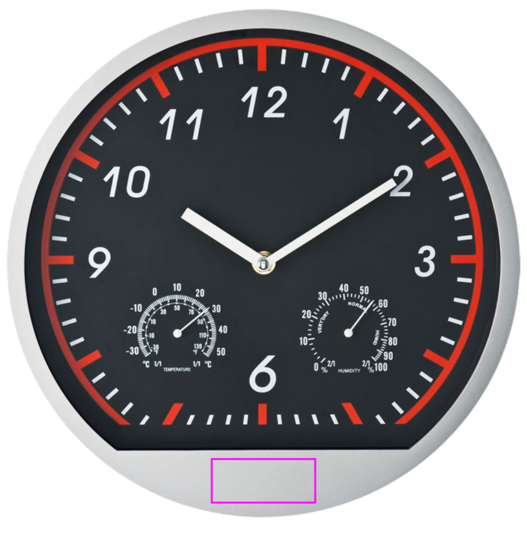 Wall clock in cool sports design. The clock has a thermometer and a hygrometer. We print your logo on the frame below the six. Excluding one AA battery (order it right away, see last page or article 999300).