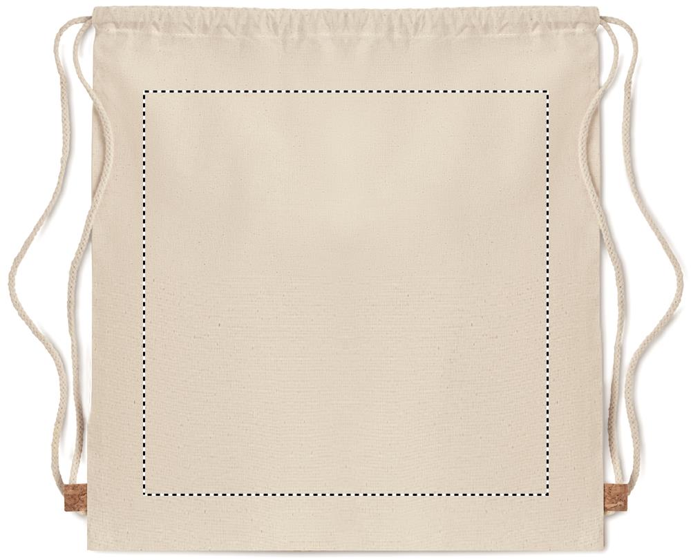 Toimsest puuvillasest nööriga kott korgist detailiga. 160 gr/m². Kork on looduslik materjal, mille struktuurse iseloomu ja pinna poorsuse tõttu võib lõpptulemuses eseme kohta esineda kõrvalekaldeid.