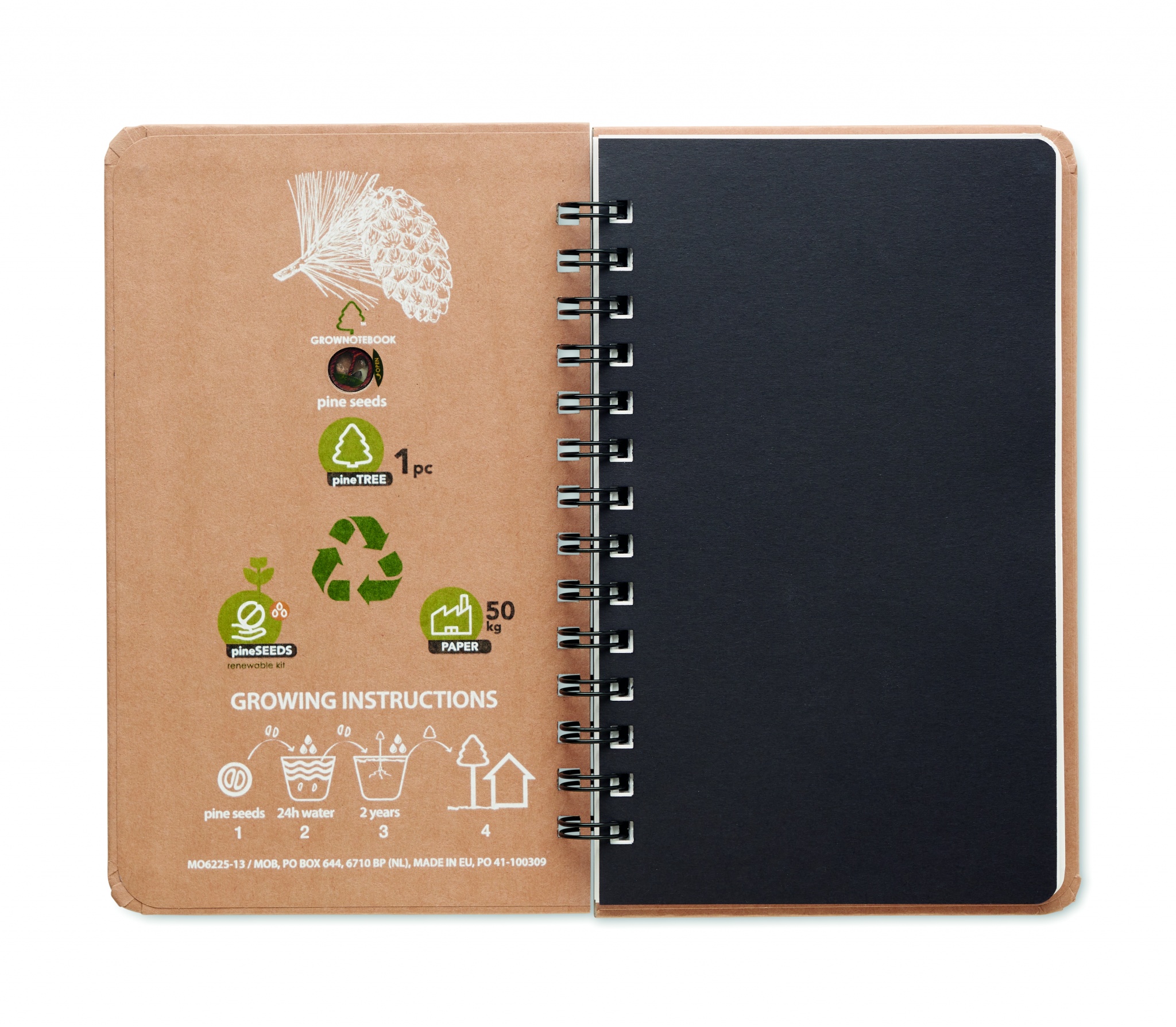 Männipuu GROWNOTEBOOK™. Salvestage oma mõtted ja andke Maale tagasi puu selle säästvalt koristatud paberist märkmikuga. Saate aidata meie planeeti päästa, istutades männi, mis kasvab u. 30 cm aastas. Kõva kate. 144 joonelist lehte (72 lehte). Kaksiktraat. Sisaldab männipuu seemneid (pinius nigra). Valmistatud EL-is.