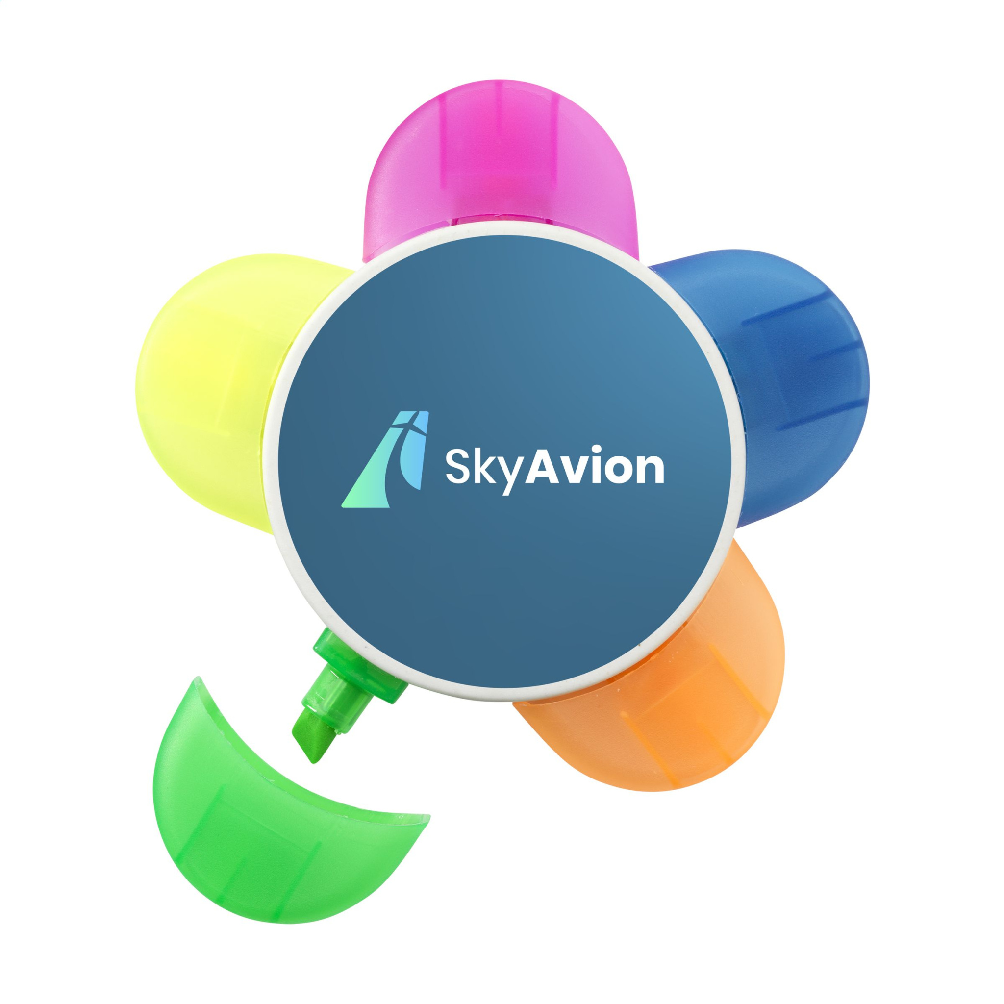 Vau! 5 fluorestseeruva värviga highlighter. Highlighteri korpus on 40% valmistatud taaskasutatud piimapakkidest ja 60% plastikust. Piimapakid koosnevad alumiiniumist, paberist ja plastikust. Need materjalid on üksteisest eraldatud ja selle highlighteri valmistamiseks kasutatakse ülejääke plastikust. Taaskasutatud materjalide kasutamise tõttu võivad materjalil olla näha väikesed vead. See annab tootele ainulaadse välimuse.
