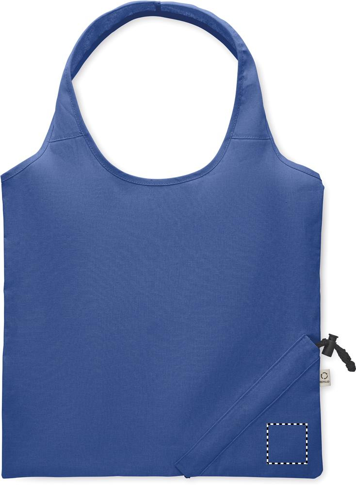 Must tarbimiseelsest taaskasutatud puuvillast kokkupandav ostukott (70% taaskasutatud puuvill ja 30% RPET). 140 gr/m².
