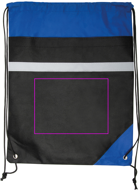 Lausriidest valmistatud nöörikott helkurribaga. Teie logo trükitakse mustale osale alumisele osale.